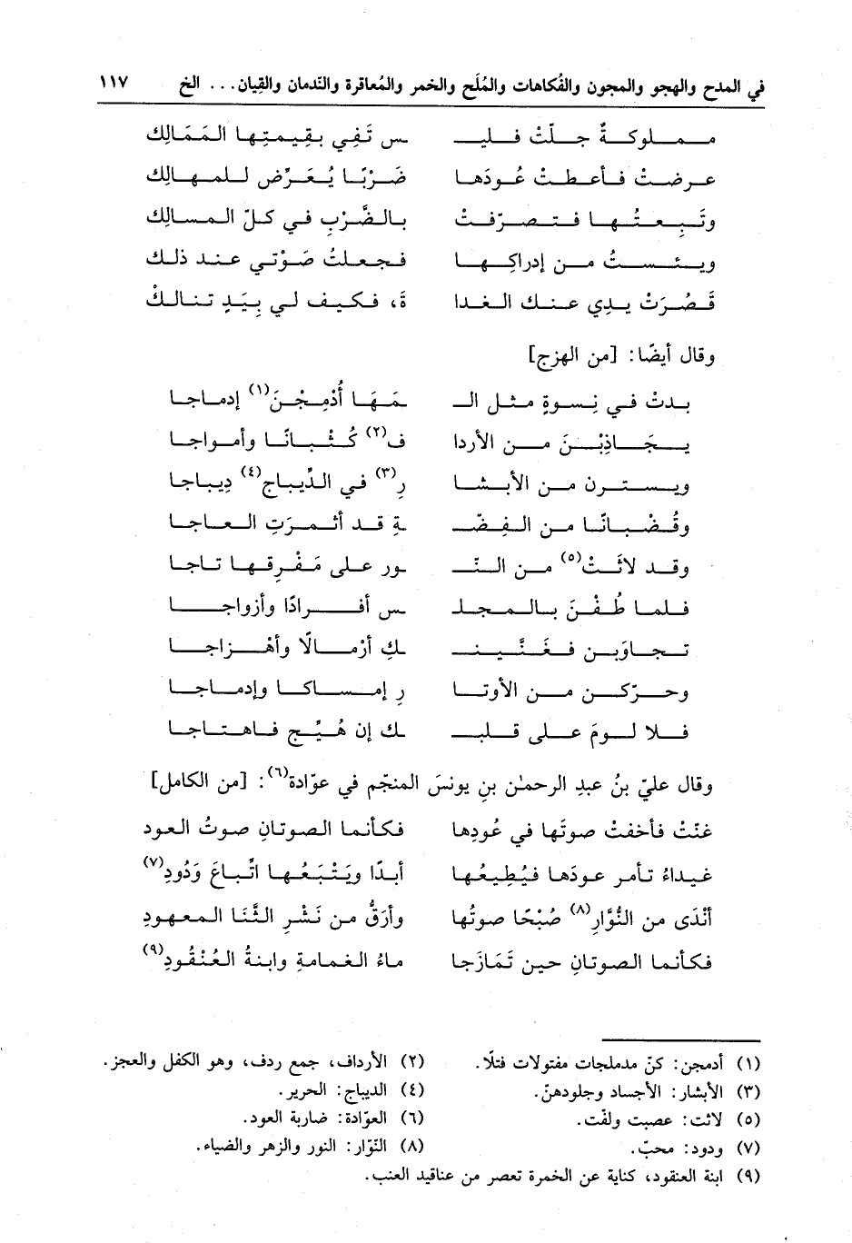 وقال علي بن عبد الرحمن بن يونس المنجم في عوادة :