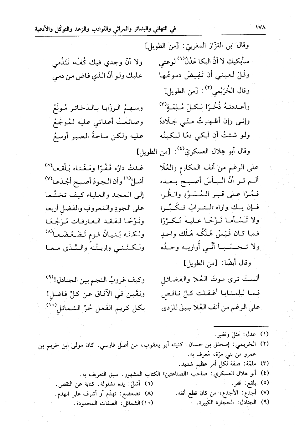 ولا تسأما نوحاً عليه مكرراً . . . ونوحاً لفقد العارفات مرجعا