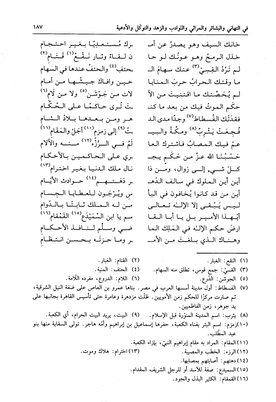 ما وقتك الحراب حرب المنايا . . . حين وافاك جيشها من أمام لم يحصنك ما اقتنيت من الآ . . . لات من جوشن ولا من لام