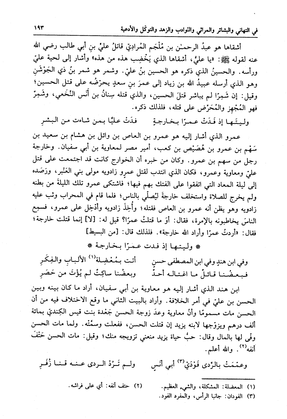 وفي ابن هندٍ وفي ابن المصطفى حسنٍ . . . أتت بمعضلة الألباب و الفكر