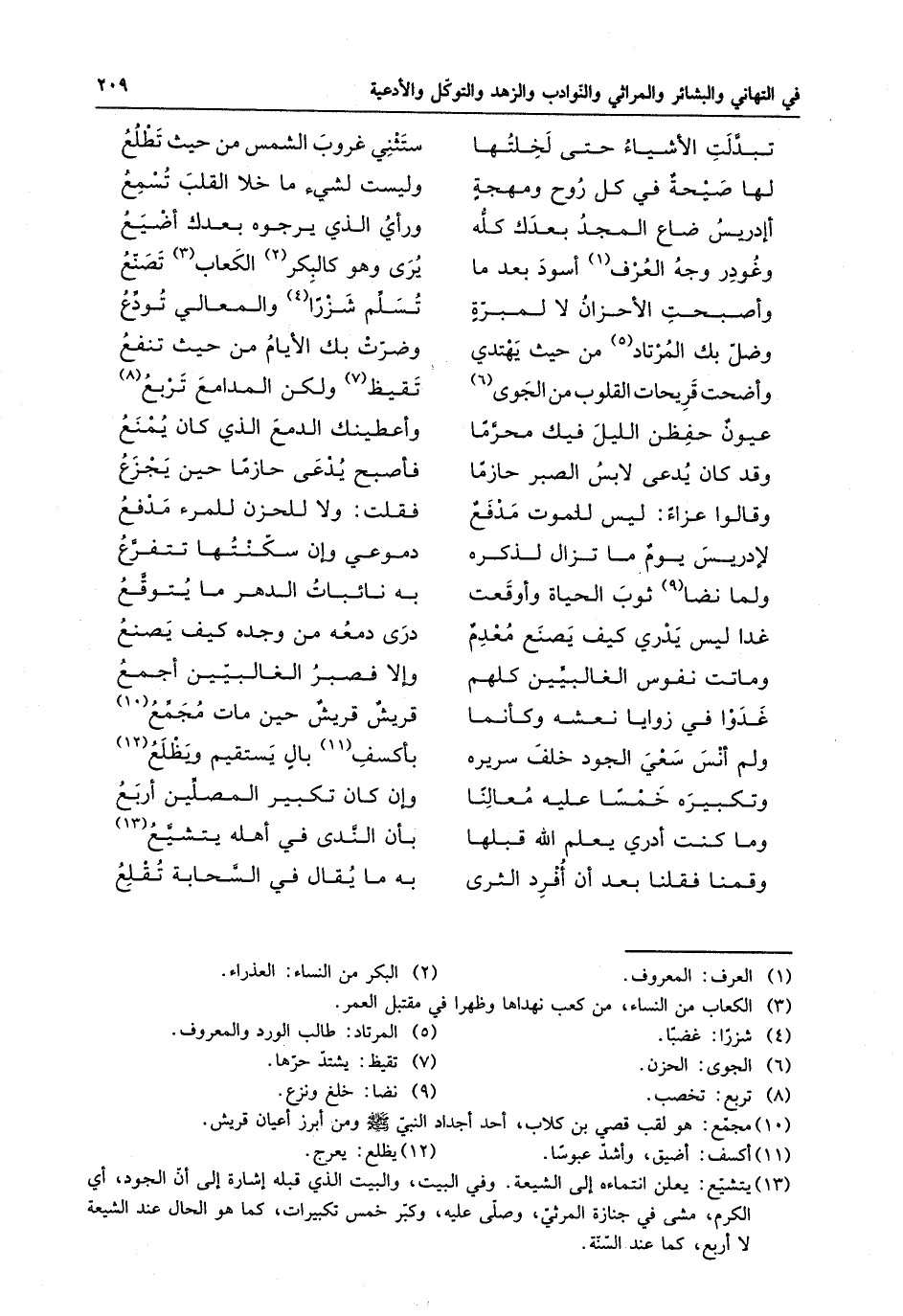 وأصبحت الأحزان لا لمبرةٍ . . . تسلم شزراً والمعالي تودع