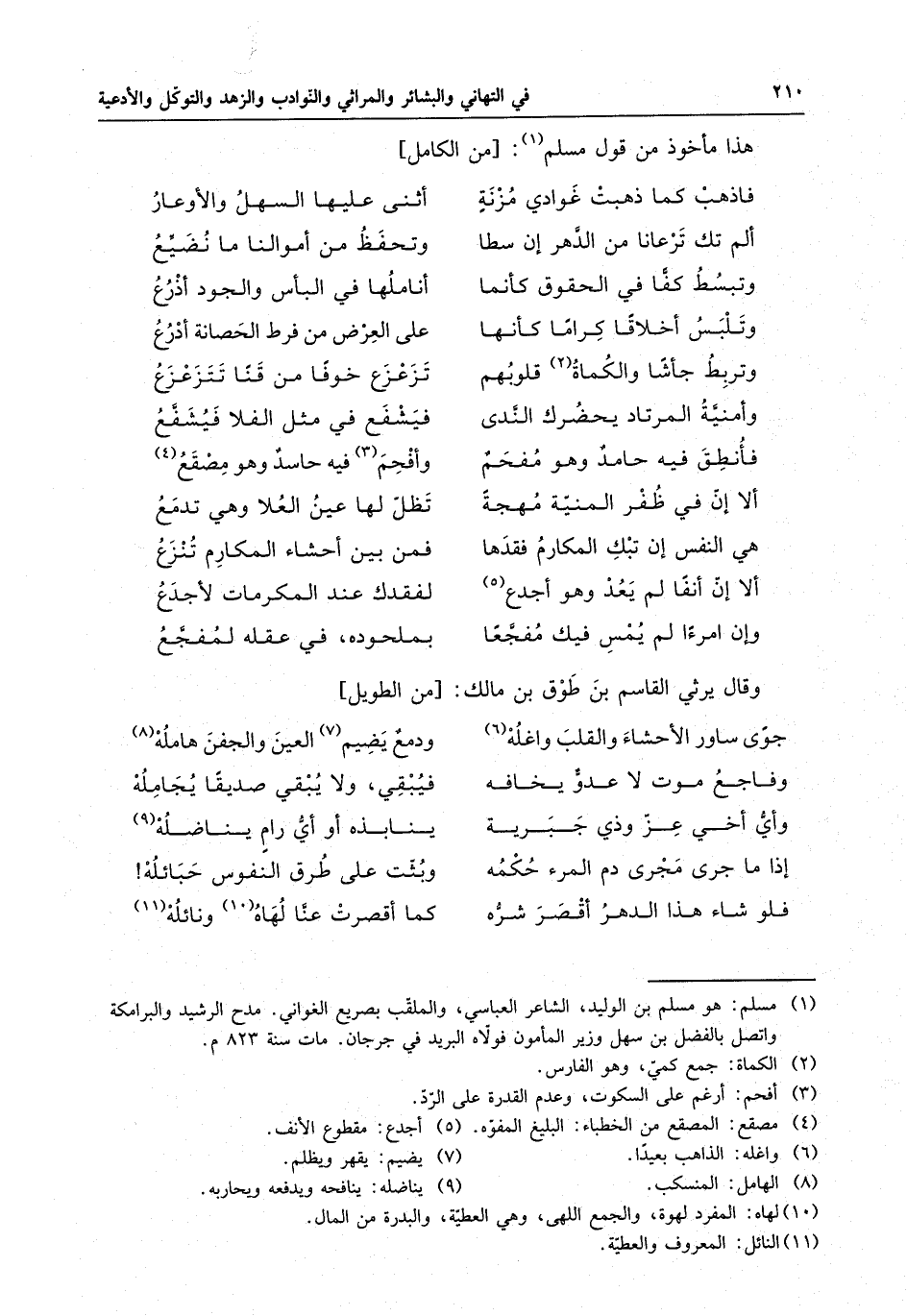 وفاجع موت لا عدوٌ يخافه . . . فيبقي ، ولا يبقي صديقاً يجامله