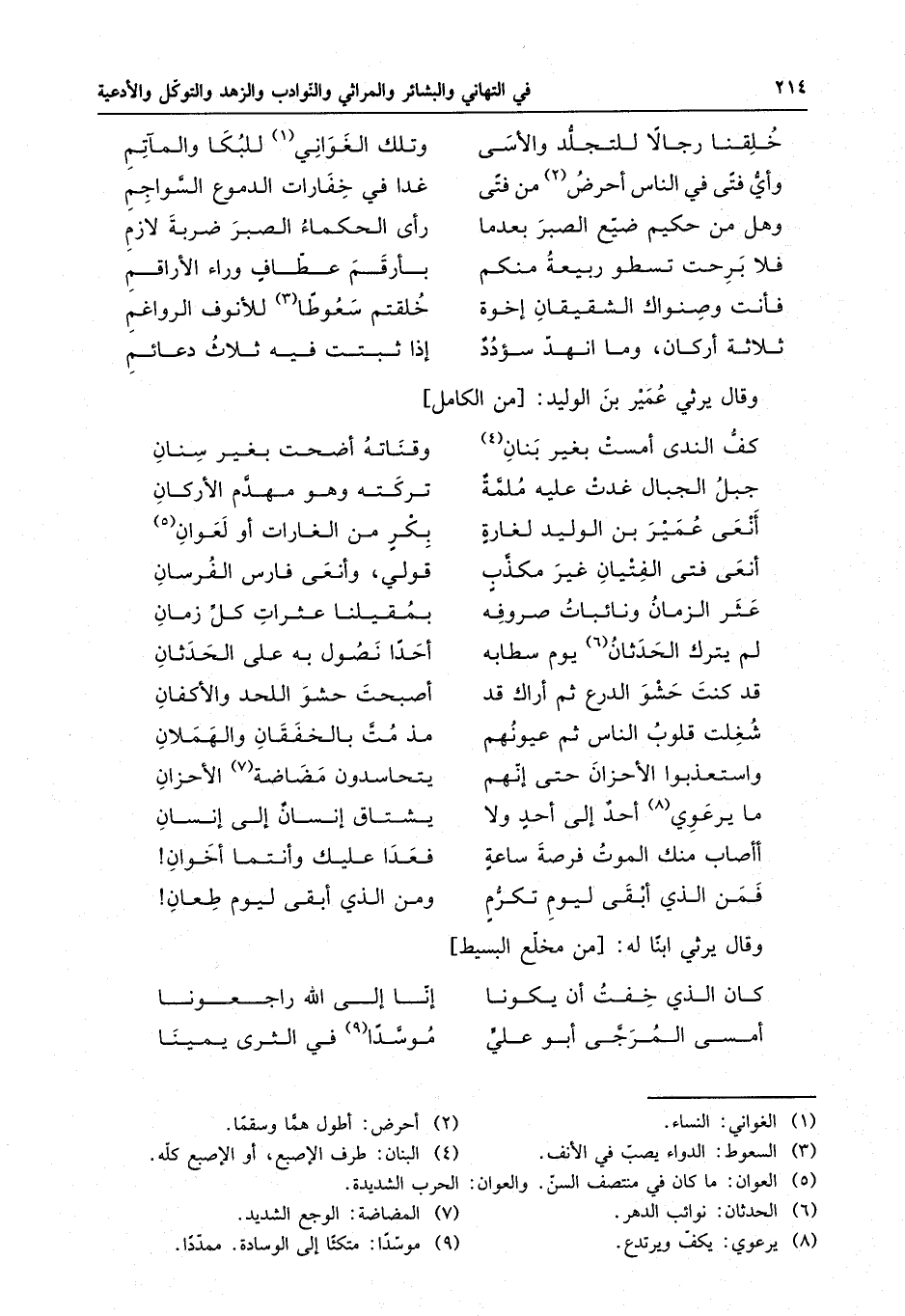 خلقنا رجالاً للتجلد والأسى . . . وتلك الغواني للبكا والمآتم