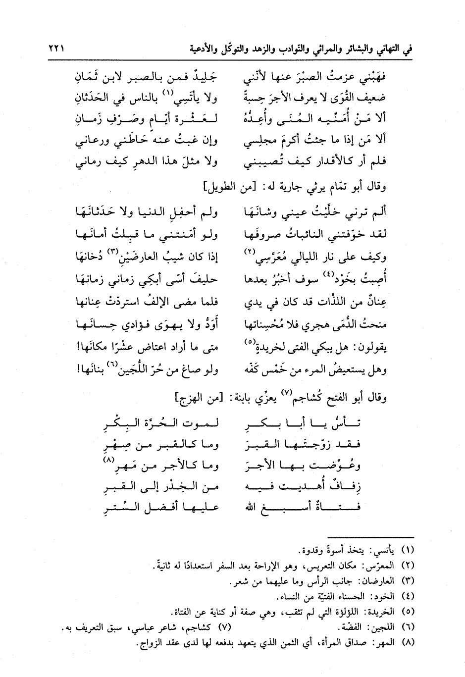 وقال أبو الفتح كشاجم يعزي بابنة :