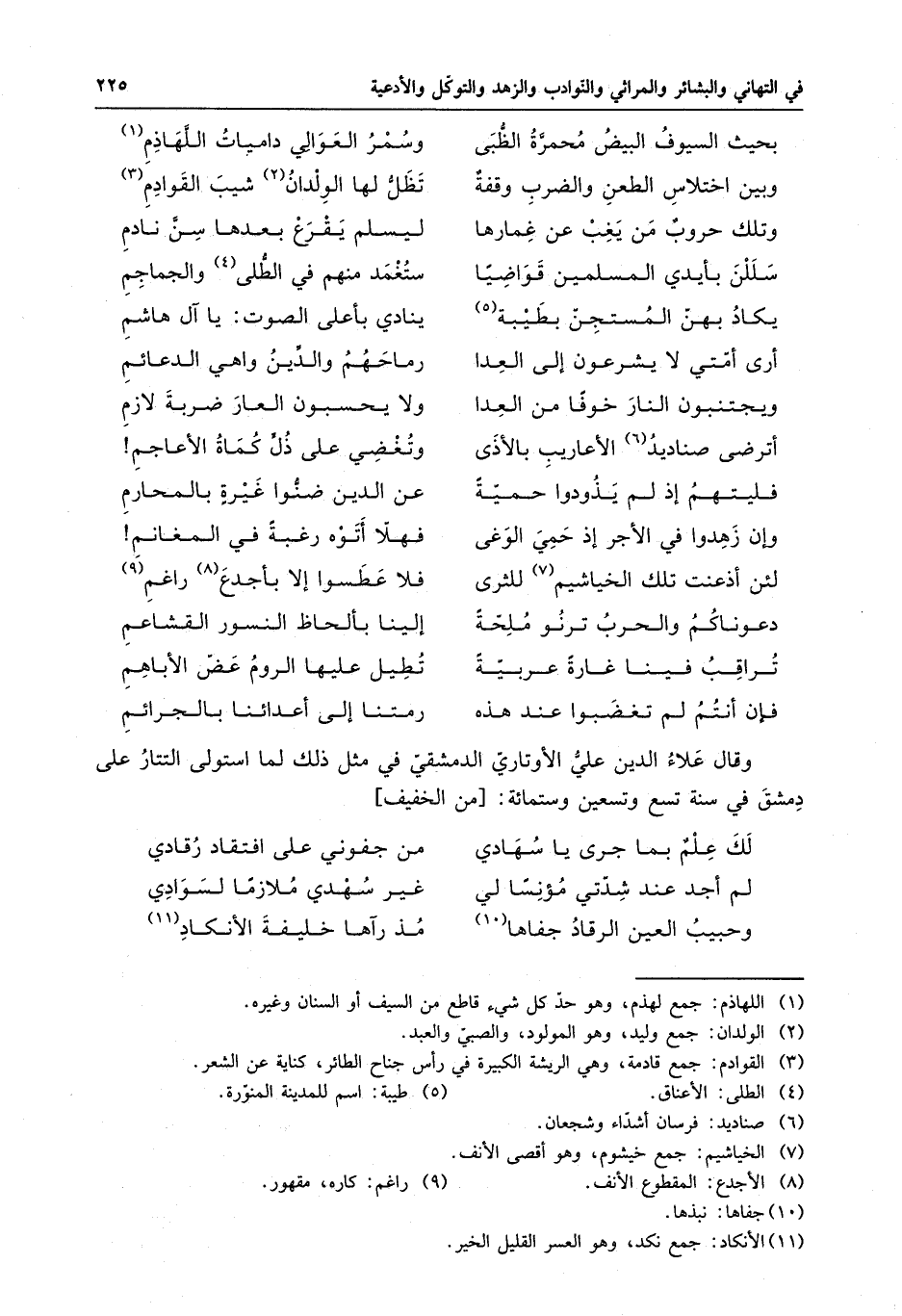 سللن بأيدي المسلمين قواضياً . . . ستغمد منهم في الطلى والجماجم