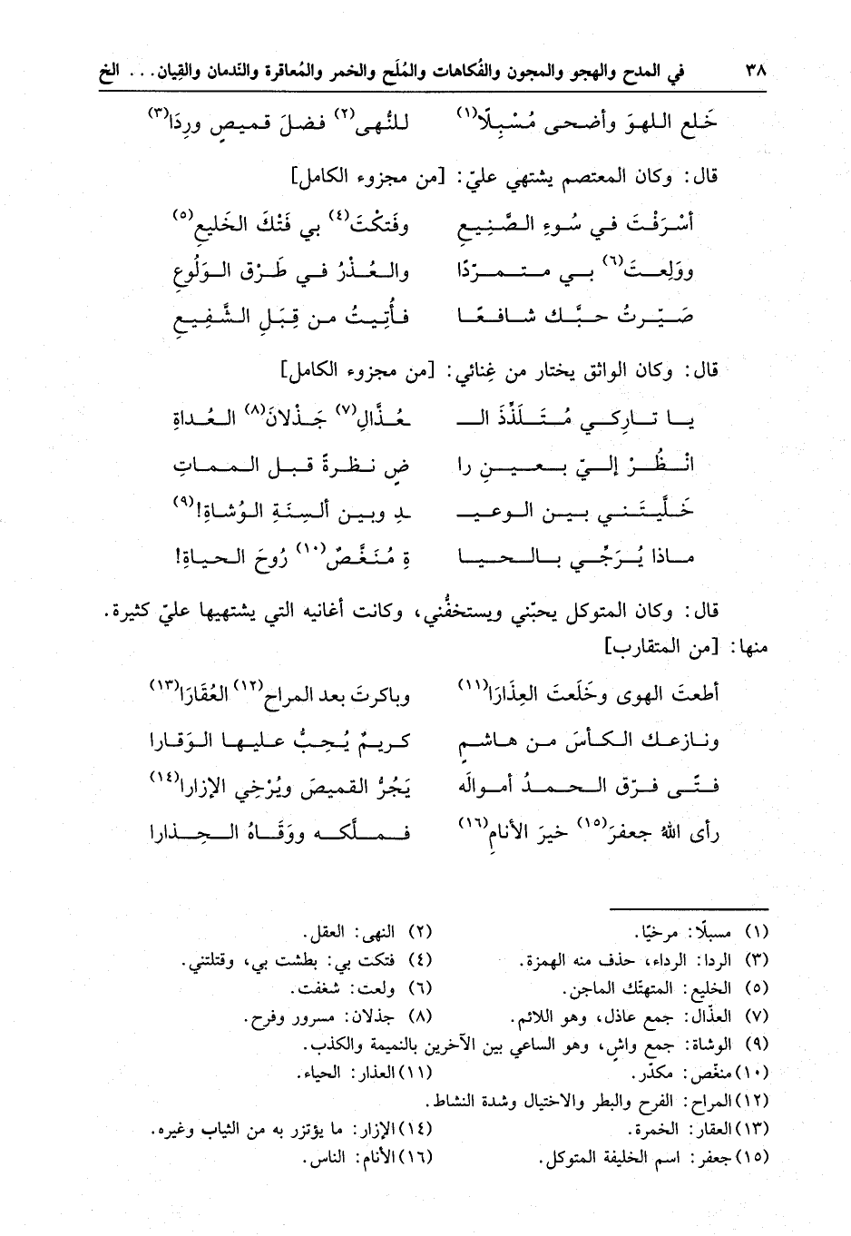 قال : وكان المتوكل يحبني ويستخفني ، وكانت أغانيه التي يشتهيها علي كثيرةٌ . منها :