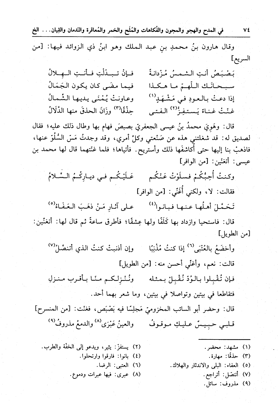 وقال هارون بن محمد بن عبد الملك وهو ابن ذي الزوائد فيها :