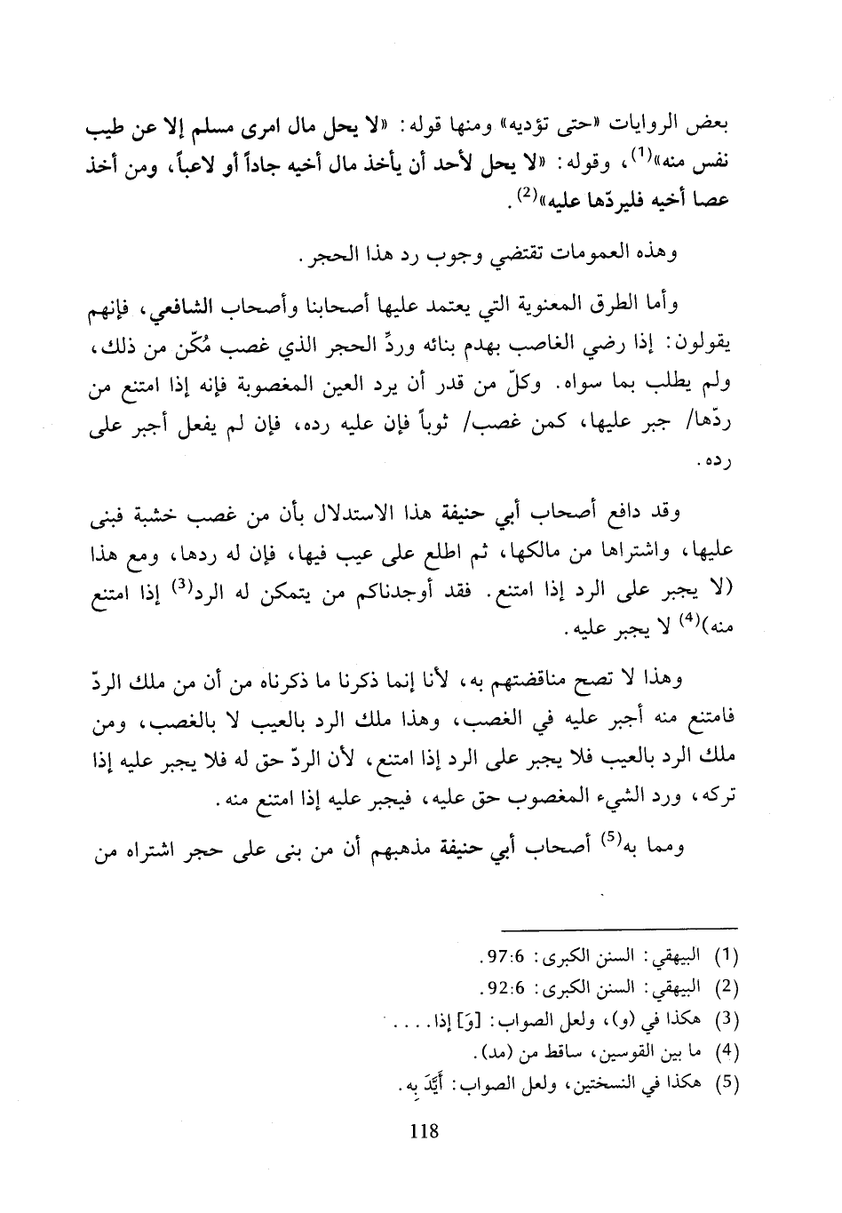 (¬2) البيهقي: السنن الكبرى: 92:6.