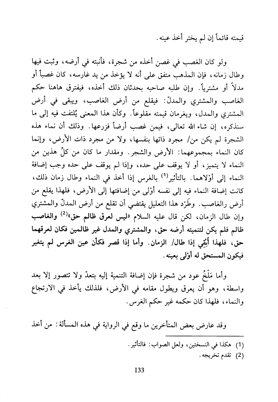 وأما مَلْخُ عود من شجرة فإن إضافة التنمية إليه بتعدّ ولا تتصور إلا بعد واسطة، وهو أن يعرق ويطول مقامه في الأرض، فلذلك يأخذ في الارتجاع والنماء، فلهذا كان حكمه غير حكم الغرس.