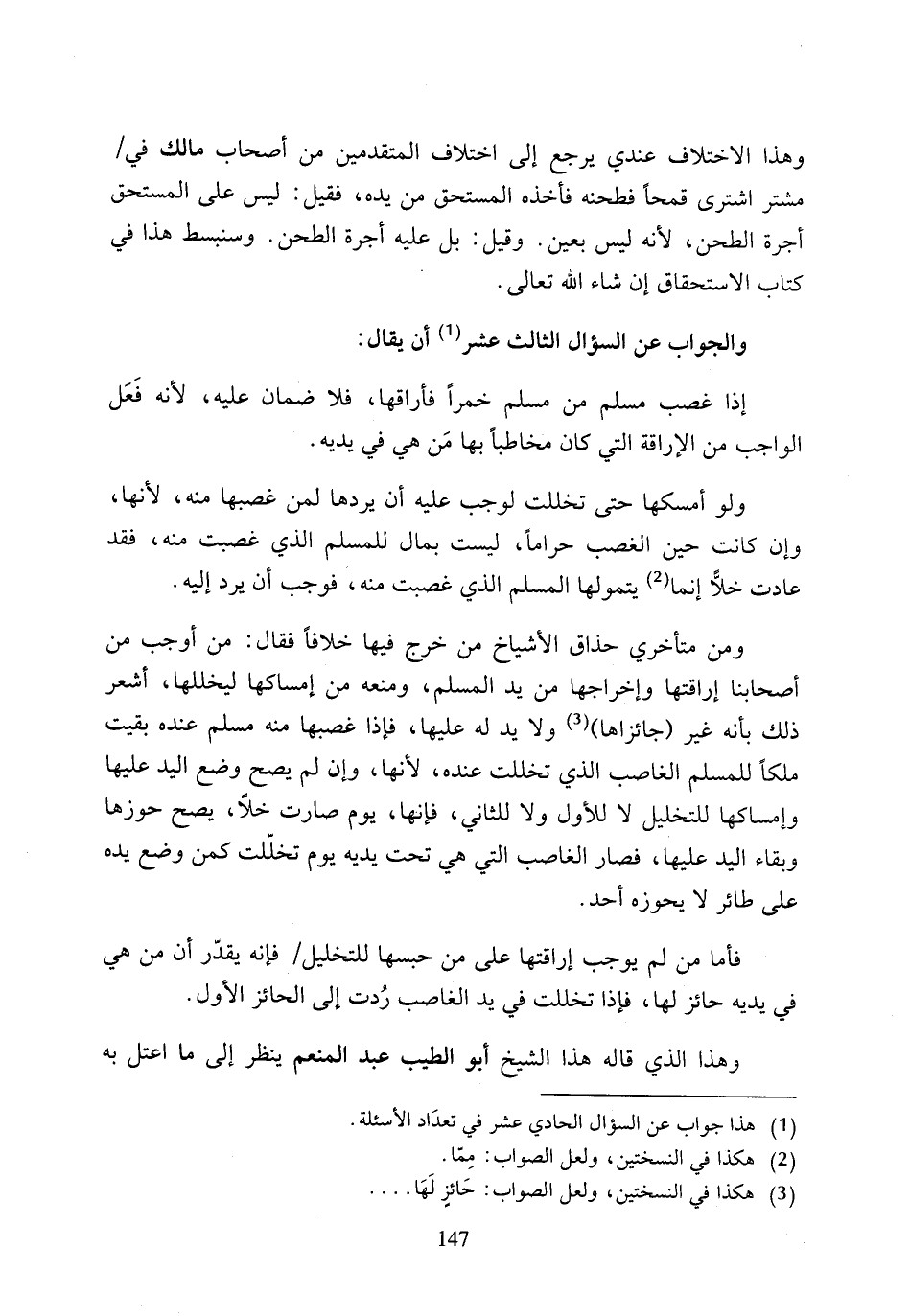 (¬1) هذا جواب عن السؤال الحادي عشر في تعدَاد الأسئلة.
