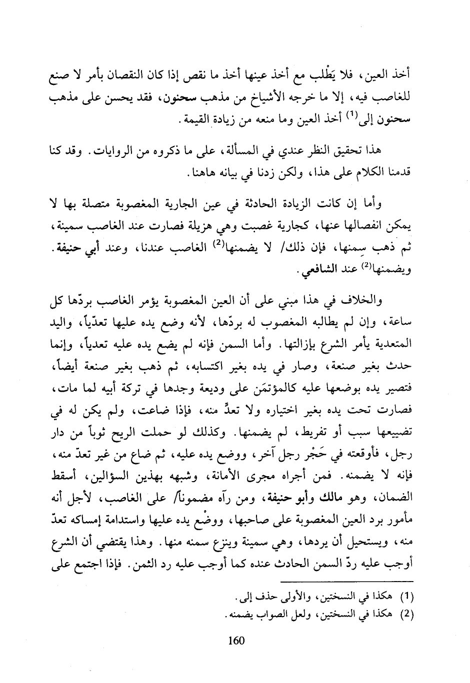 أخذ العين، فلا يَطْلب مع أخذ عينها أخذ ما نقص إذا كان النقصان بأمر لا صنع للغاصب فيه، إلا ما خرجه الأشياخ من مذهب سحنون، فقد يحسن على مذهب سحنون إلى (¬1) أخذ العين وما منعه منما زيادة القيمة.