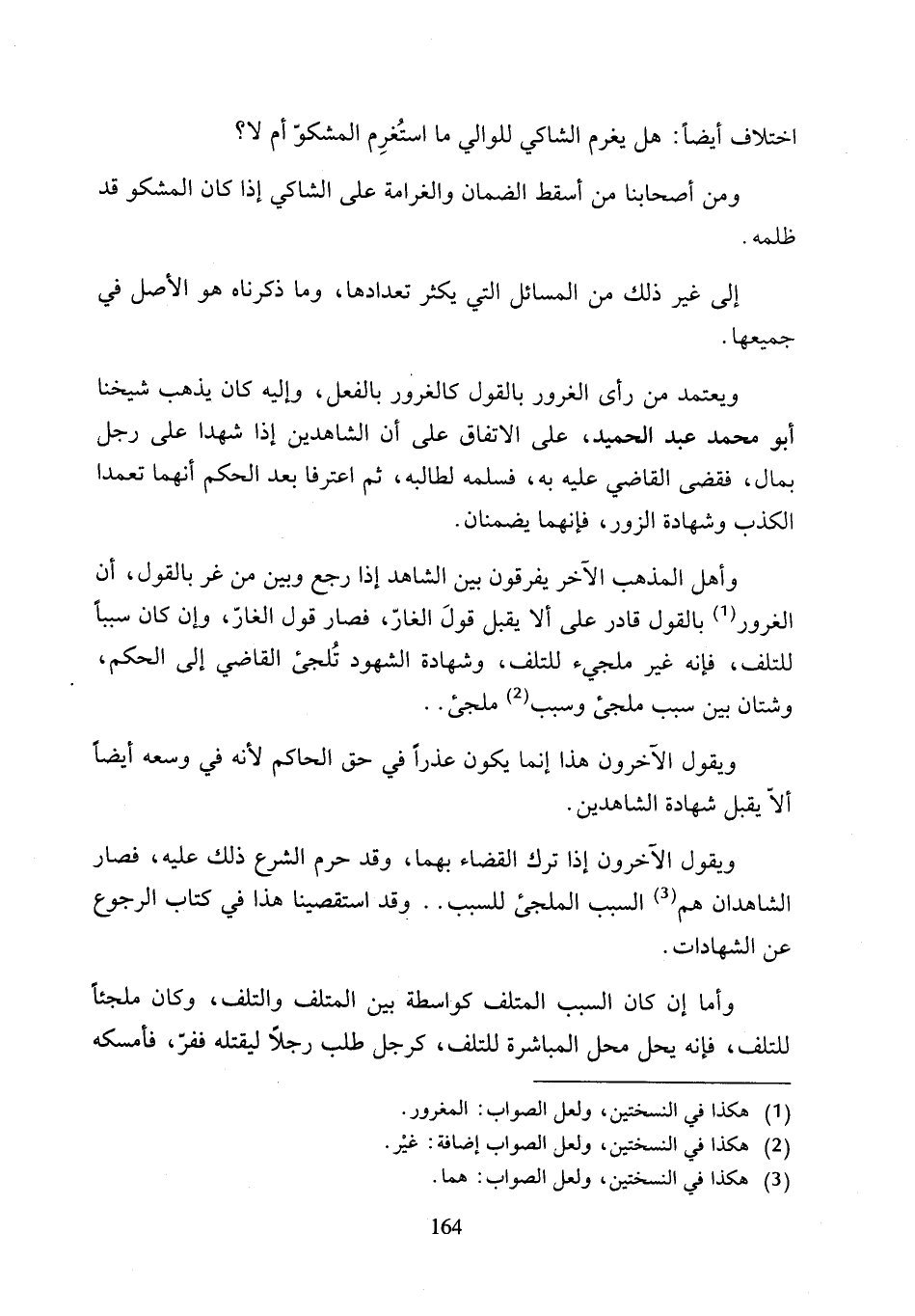 ويقول الآخرون هذا إنما يكون عذرًا في حق الحاكم لأنه في وسعه أيضًا ألاّ يقبل شهادة الشاهدين.