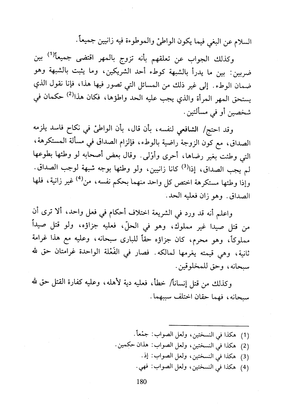 وكذلك الجواب عن تعلقهم بأنه تزوج بالمهر اقتضى جميعًا (¬1) بين ضربين: بين ما يدرأ بالشبهة كوطء أحد الشريكين، وما يثبت بالشبهة وهو ضمان الوطء. إلى غير ذلك من المسائل التي تصور فيها هذا، فإنا نقول الذي يستحق المهر المرأة والذي يجب عليه الحد واطؤها، فكان هذا (¬2) حكمان في شخصين أو في مسألتين.