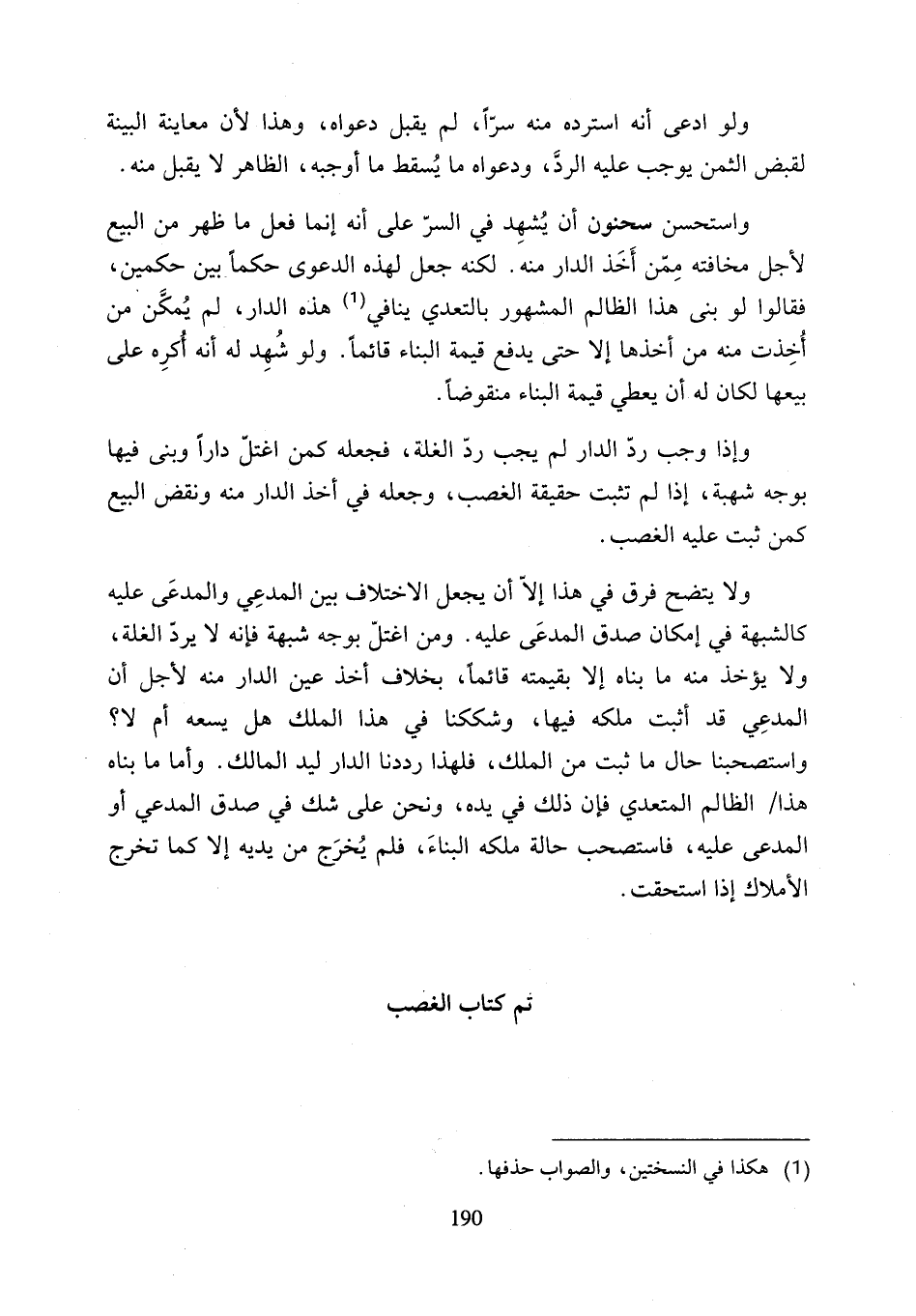 ولا يتضح فرق في هذا إلاّ أن يجعل الاختلاف بين المدعِي والمدعَى عليه كالشبهة في إمكان صدق المدعَى عليه. ومن اغتلّ بوجه شبهة فإنه لا يردّ الغلة، ولا يؤخذ منه ما بناه إلا بقيمته قائمًا، بخلاف أخذ عين الدار منه لأجل أن المدعِي قد أثبت ملكه فيها، وشككنا في هذا الملك هل يسعه أم لا؟
