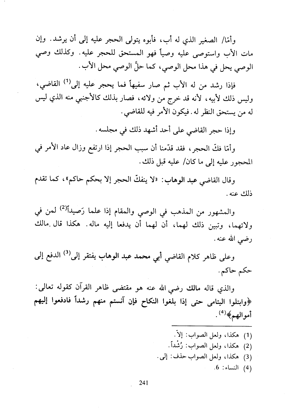 {وَابْتَلُوا الْيَتَامَى حَتَّى إِذَا بَلَغُوا النِّكَاحَ فَإِنْ آنَسْتُمْ مِنْهُمْ رُشْدًا فَادْفَعُوا إِلَيْهِمْ أَمْوَالَهُمْ} (¬4).