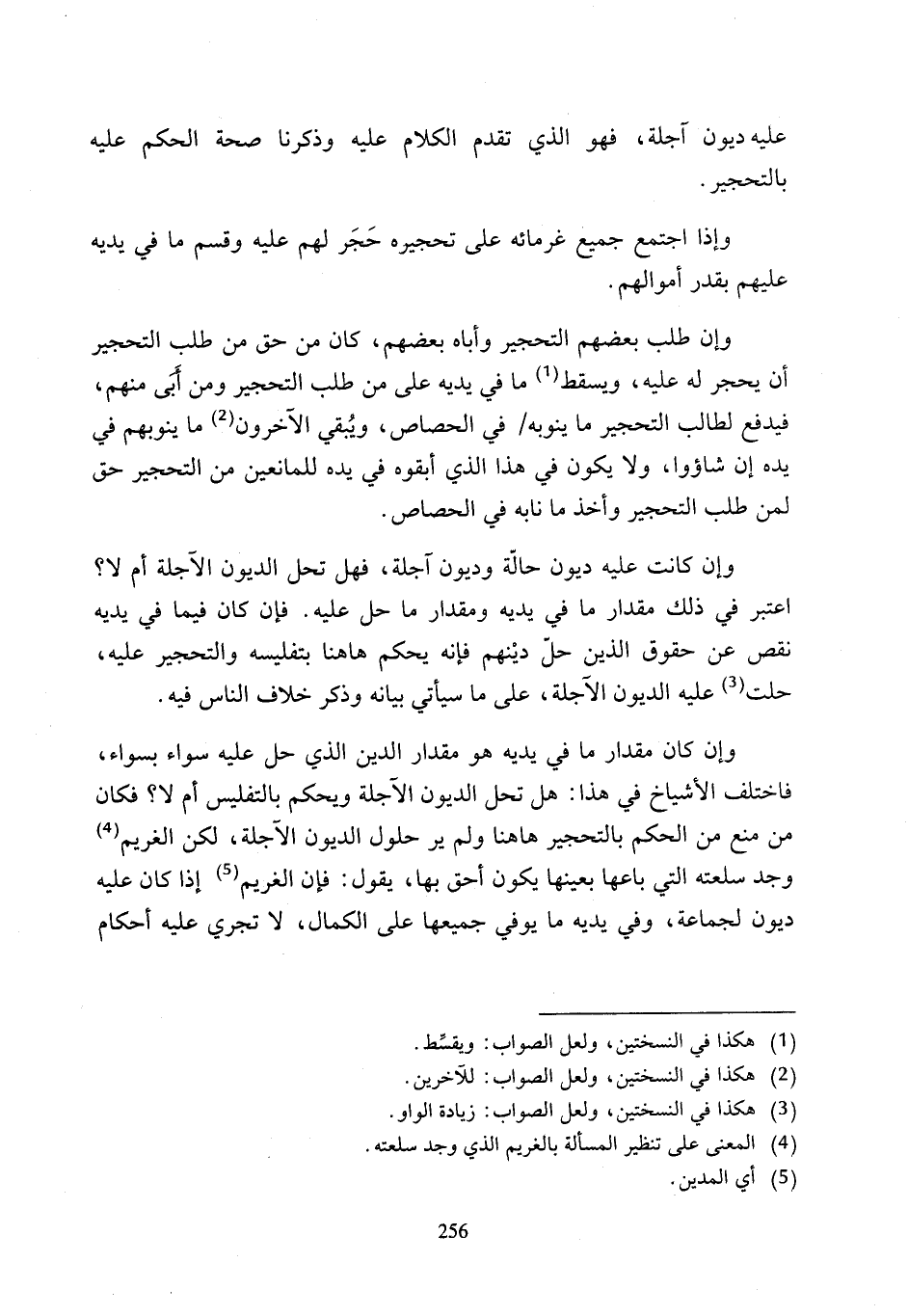 وإن كانت عليه ديون حالّة وديون آجلة، فهل تحل الديون الآجلة أم لا؟ اعتبر في ذلك مقدار ما في يديه ومقدار ما حل عليه. فإن كان فيما في يديه نقص عن حقوقال فين حلّ ديْنهم فإنه يحكم ها هنا بتفليسه والتحجير عليه، حلت (¬3) عليه الديون الآجلة، على ما سيأتي بيانه وذكر خلاف الناس فيه.