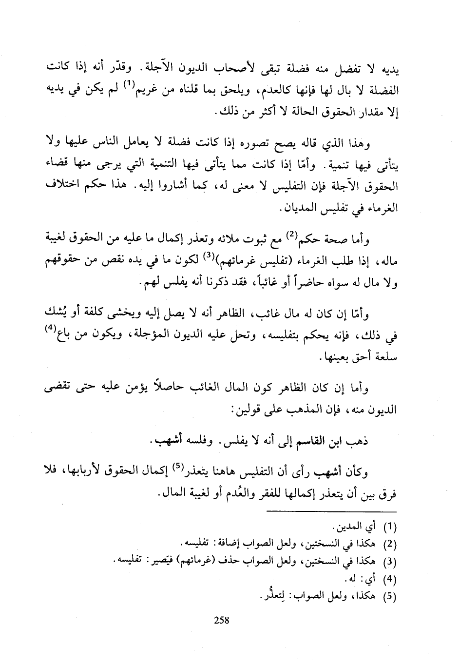 (¬3) هكذا في النسختين، ولعل الصواب حذف (غرمائهم) فيَصير: تفليسه.