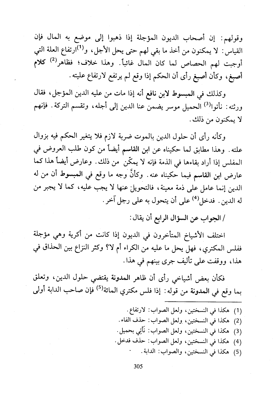 وكأنه رأى أن حلول الدين بالموت ضربة لازم فلا يتغير الحكم فيه بزوال علته. وهذا مطابق لما حكيناه عن ابن القاسم أيضًا من كون طلب العروض في المفلس إذا أراد بقاءها في الذمة فإنه لا يمكّن من ذلك. وعارض أيضًا هذا كما عارض ابن القاسم فيما حكيناه عنه. وكأنَّ وجه ما وقع في المبسوط أن من له الدين إنما عامل على ذمة معينة، فالتحويل عنها لا يجب عليه، كما لا يجبر من له الدين. فدخل (¬4) على أن يتحول به على رجل آخر.