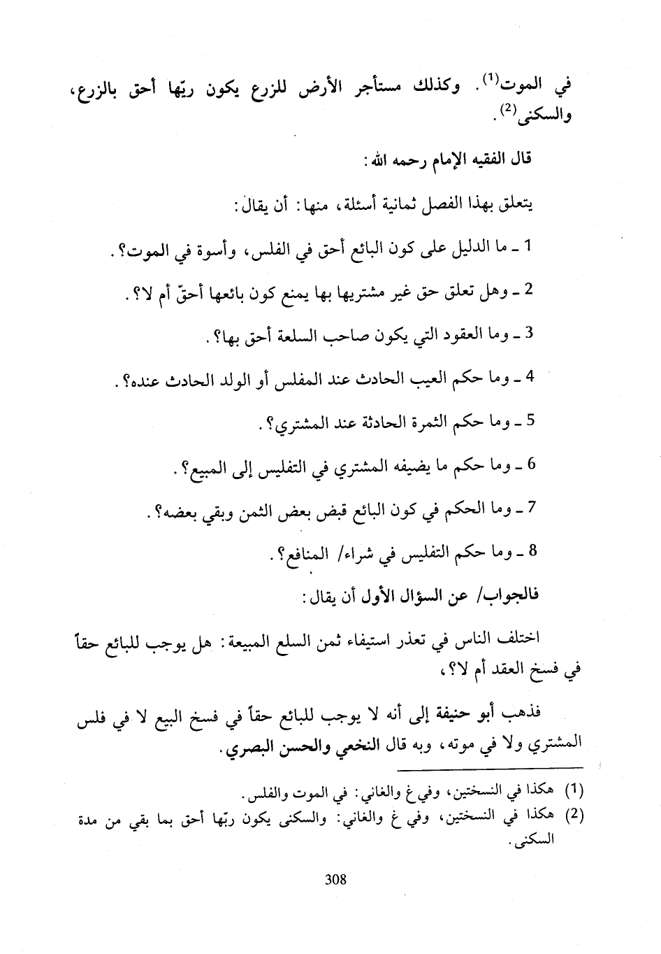 يتعلق بهذا الفصل ثمانية أسئلة، منها: أن يقال: