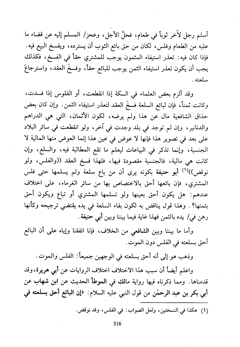 (¬1) هكذا في النسختين، ولعل الصواب: في الفلس، وقد نوقض.