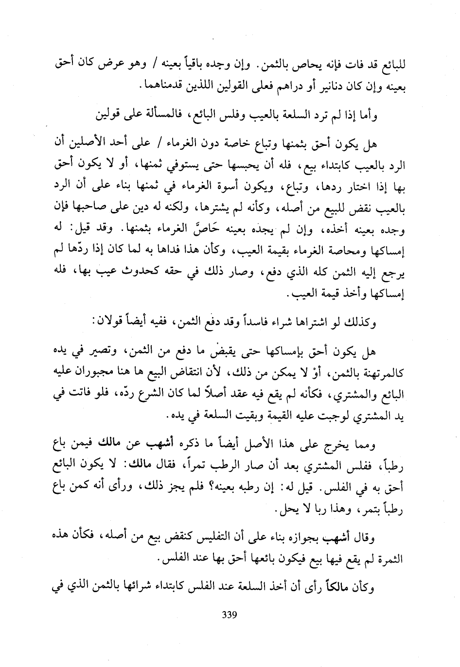 ومما يخرج على هذا الأصل أيضًا ما ذكره أشهب عن مالك فيمن باع رطبًا، ففلس المشتري بعد أن صار الرطب تمرًا، فقال مالك: لا يكون البائع أحق به في الفلس. قيل له: إن رطبه بعينه؟ فلم يجز ذلك، ورأى أنه كمن باع رطبًا بتمر، وهذا ربا لا يحل.