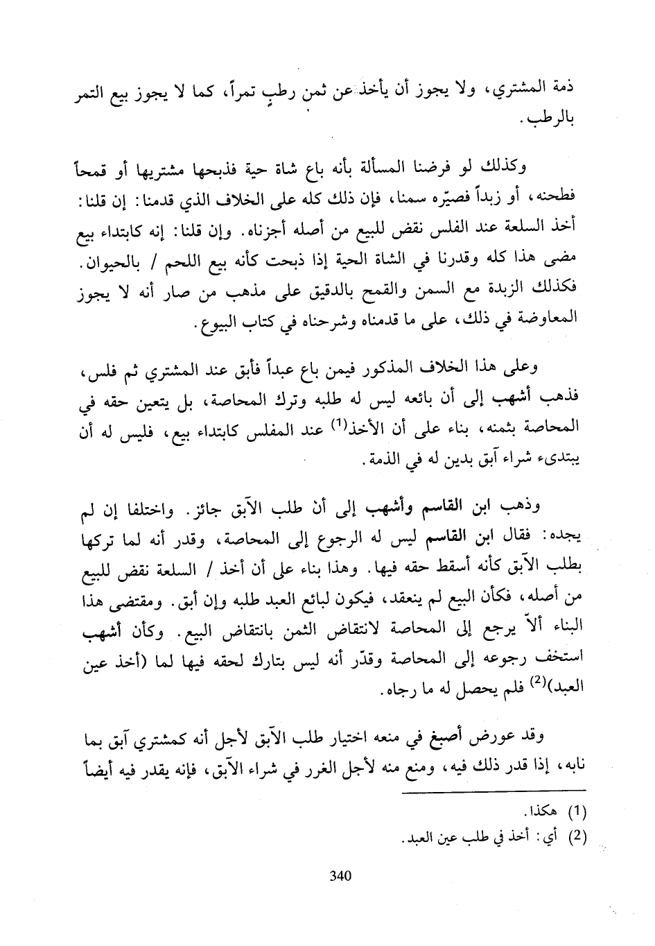 وذهب ابن القاسم وأشهب إلى أن طلب الآبق جائز. واختلفا إن لم يجده: فقال ابن القاسم ليس له الرجوع إلى المحاصة، وقدر أنه لما تركها بطلب الآبق كأنه أسقط حقه فيها. وهذ ابن اء على أن أخذ السلعة نقض للبيع من أصله، فكأن البيع لم ينعقد، فيكون لبائع العبد طلبه وان أبق. ومقتضى هذا البناء ألاّ يرجع إلى المحاصة لانتقاض الثمن بانتقاض البيع. وكأن أشهب استخف رجوعه إلى المحاصة وقدّر أنه ليس بتارك لحقه فيها لما (أخذ عين العبد) (¬2) فلم يحصل له ما رجاه.
