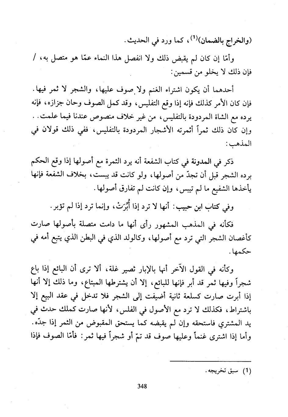 فإن كان الأمر كذلك فإنه إذا وقع التفليس، وقد كمل الصوف وحان جزازه، فإنه يرده مع الشاة المردودة بالتفليس، من غير خلاف منصوص عندنا فيما علمت .. وإن كان ذلك ثمرًا أثمرته الأشجار المردودة بالتفليس، ففي ذلك قولان في المذهب: