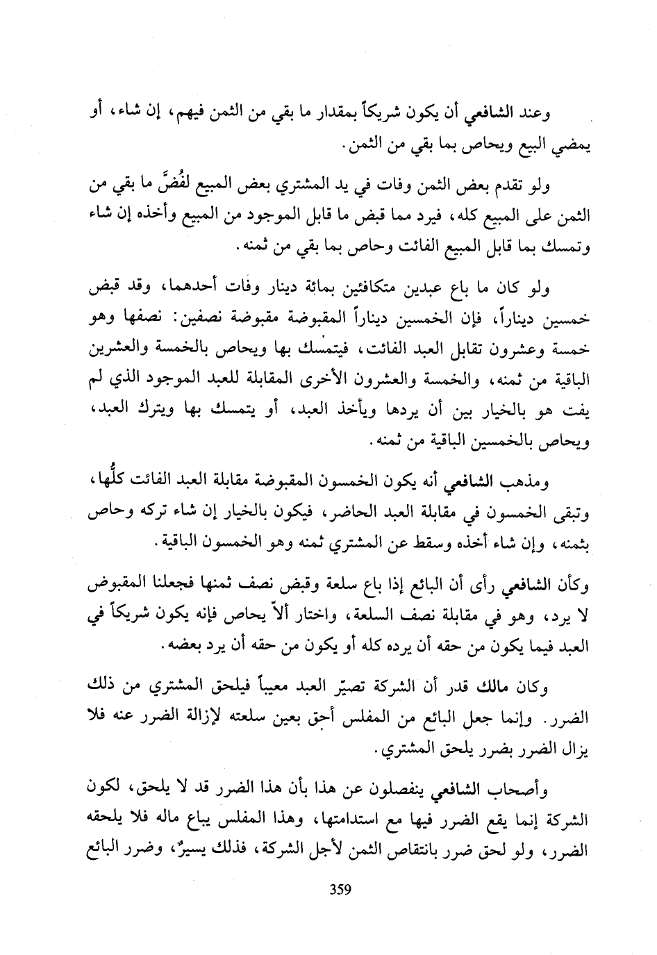 وكان مالك قدر أن الشركة تصيّر العبد معيبًا فيلحق المشتري من ذلك الضرر. وإنما جعل البائع من المفلس أحق بعين سلعته لإزالة الضرر عنه فلا يزال الضرر بضرر يلحق المشتري.