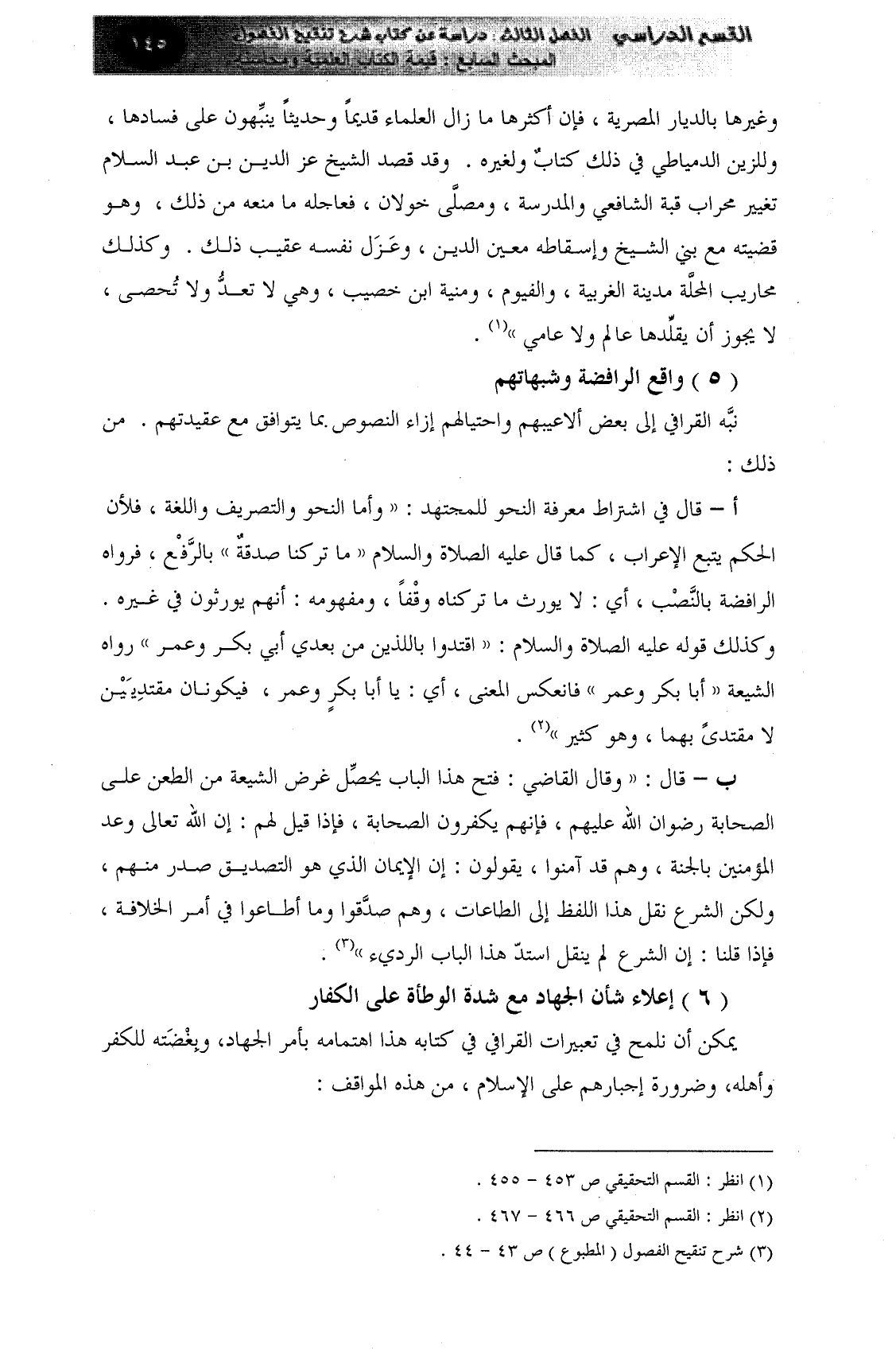كتاب جزء من شرح تنقيح الفصول في علم الأصول - رسالة ماجستير (اسم الجزء: 1)
