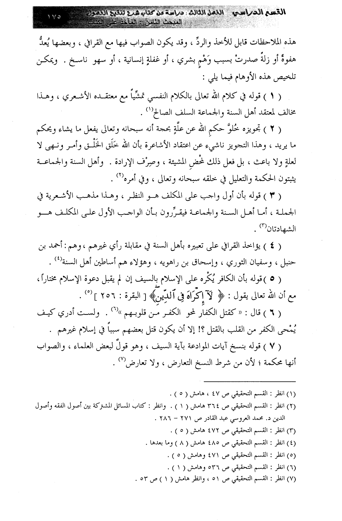 (¬2) انظر: القسم التحقيقي ص 364 هامش (1) . وانظر: كتاب المسائل المشتركة بين أصول الفقه وأصول الدين د. محمد العروسي عبد القادر ص 271 - 286.