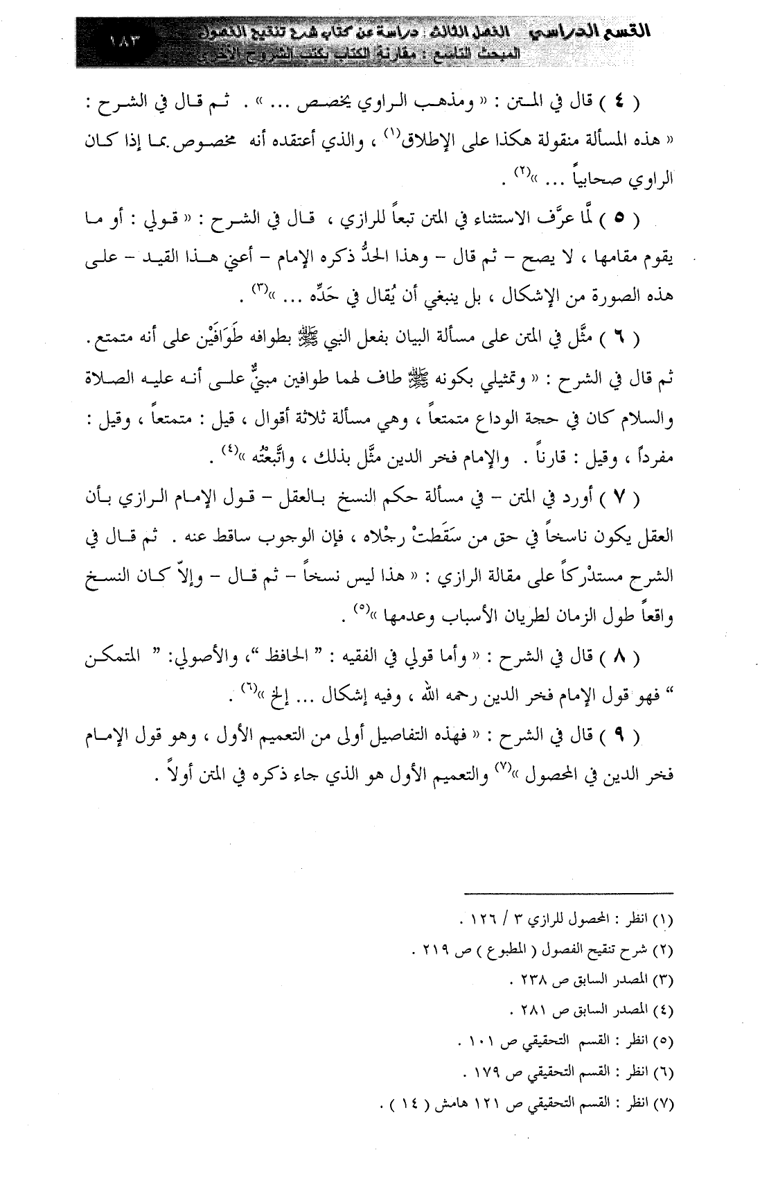 كتاب جزء من شرح تنقيح الفصول في علم الأصول - رسالة ماجستير (اسم الجزء: 1)