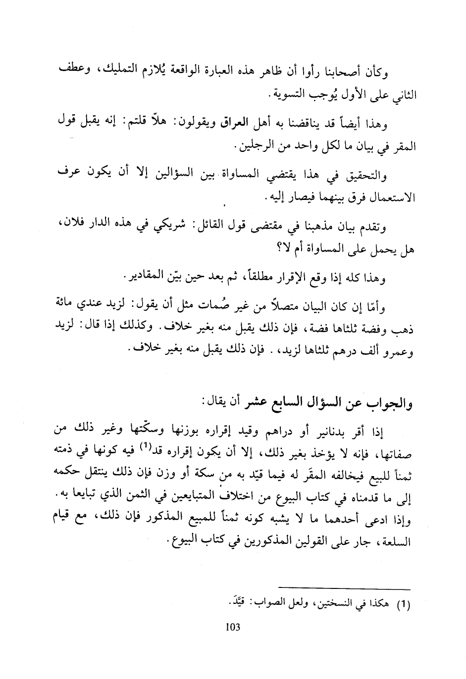 وتقدم بيان مذهبنا في مقتضى قول القائل: شريكي في هذه الدار فلان، هل يحمل على المساواة أم لا؟