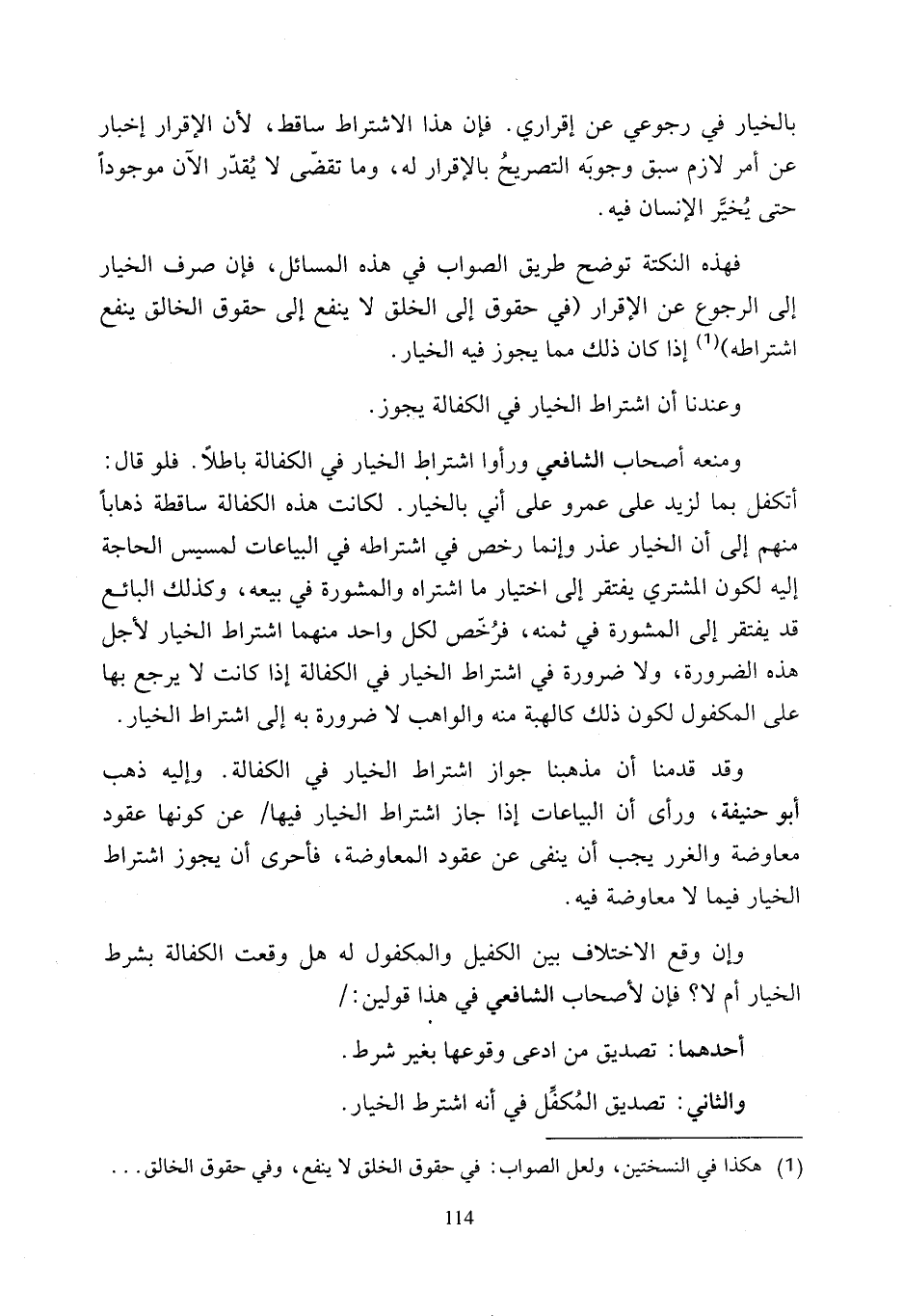 فهذه النكتة توضح طريق الصواب في هذه المسائل، فإن صرف الخيار إلى الرجوع عن الإقرار (في حقوق إلى الخلق لا ينفع إلى حقوق الخالق ينفع اشتراطه) (¬1) إذا كان ذلك مما يجوز فيه الخيار.