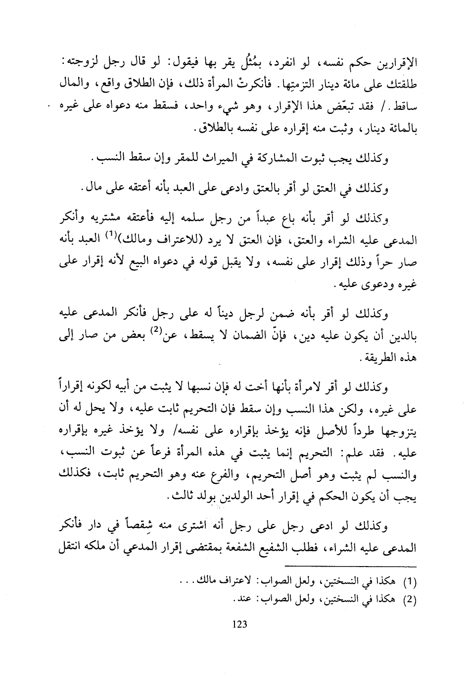 (¬1) هكذا في النسختين، ولعل الصواب: لاعتراف مالك ...
