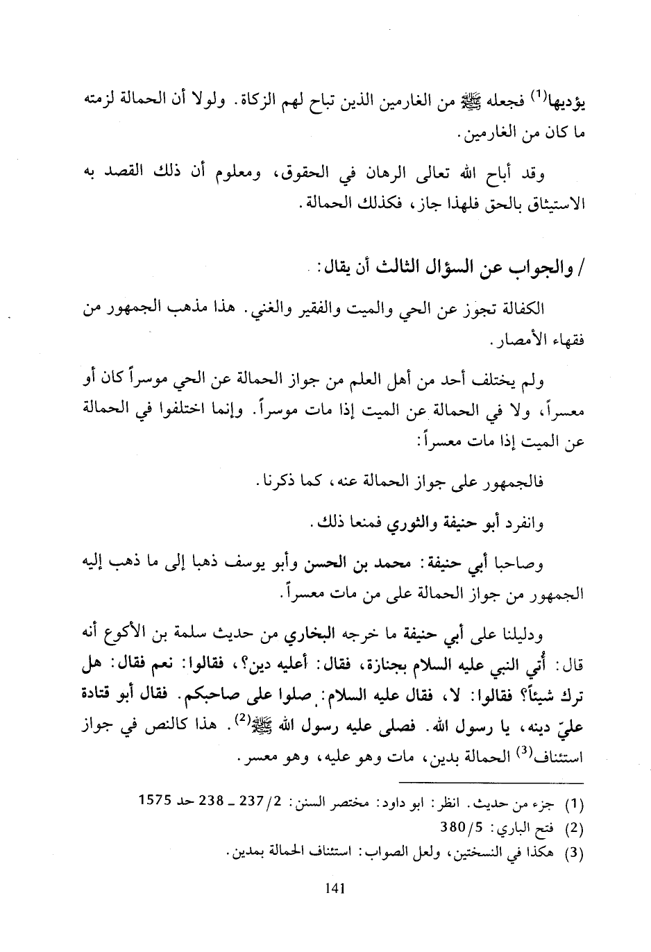 وصاحبا أبي حنيفة: محمَّد بن الحسن وأبو يوسف ذهبا إلى ما ذهب إليه الجمهور من جواز الحمالة على من مات معسرًا.