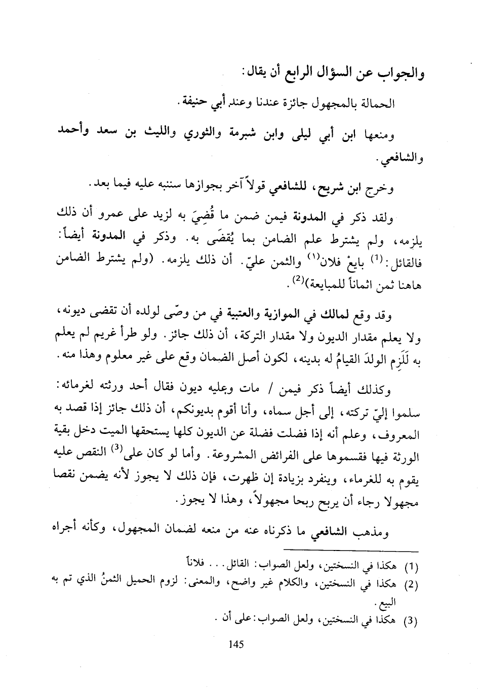 (¬2) هكذا في النسختين، والكلام غير واضح، والمعنى: لزوم الحميل الثمنُ الذي تم به البيع.