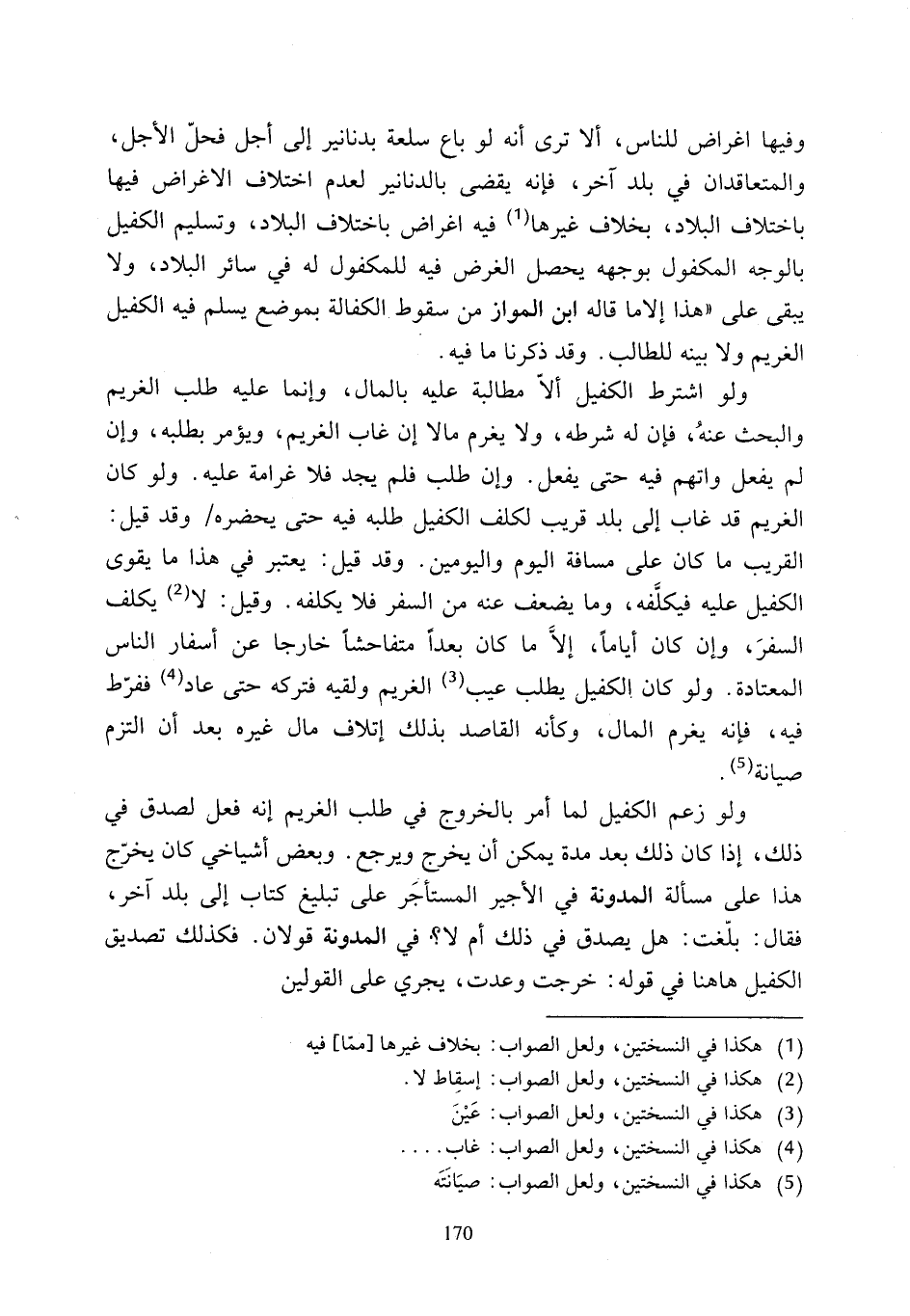 ولو اشترط الكفيل ألاّ مطالبة عليه بالمال، وإنما عليه طلب الغريم والبحث عنهُ، فإن له شرطه، ولا يغرم مالا إن غاب الغريم، ويؤمر بطلبه، وإن لم يفعل واتهم فيه حتى يفعل. وإن طلب فلم يجد فلا غرامة عليه. ولو كان الغريم قد غاب إلى بلد قريب لكلف الكفيل طلبه فيه حتى يحضره وقد قيل: القريب ما كان على مسافة اليوم واليومين. وقد قيل: يعتبر في هذا ما يقوى الكفيل عليه فيكلَّفه، وما يضعف عنه من السفر فلا يكلفه. وقيل: لا (¬2) يكلف السفرَ، وإن كان أيامًا، إلاَّ ما كان بعداً متفاحشًا خارجا عن أسفار الناس المعتادة. ولو كان الكفيك يطلب عيب (¬3) الغريم ولقيه فتركه حتى عاد (¬4) ففرّط فيه، فإنه يغرم المال، وكأنه المقاصد بذلك إتلاف مال غيره بعد أن التزم صيانة (¬5).
