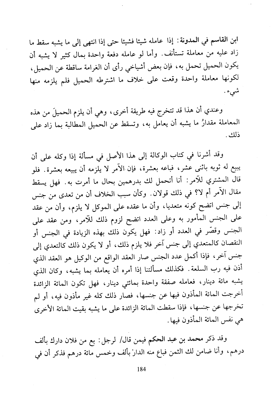 إلى جنس اتضح كونه متعديا، وأن ما عقده على الموكل لا يلزم، وأن من عقد على الجنس المأمور به وعلى العدد اتضح لزوم ذلك للآمر، ومن عقد على الجنس وقصّر في العدد أو زاد: فهل يكون ذلك بهذه الزيادة في الجنس أو النقصان كالمتعدي إلى جنس آخر فلا يلزم ذلك، أو لا يكون ذلك كالتعدي إلى جنس آخر، فإذا أكمل عدد الجنس صار العقد الواقع من الوكيل هو العقد الذي أذن فيه رب السلعة. فكذلك مسألتنا إذا أمره أن يعامله بما يشبه، وكان الذي يشبه مائة دينار، فعامله صفقة واحدة بمائتي دينار، فهل تكون المائة الزائدة أخرجت المائة المأذون فيها عن جنسها، فصار ذلك كله غير مأذون فيه، أو لم تخرجها عن جنسها، فإذا سقطت المائة الزائدة على ما يشبه بقيت المائة الأخرى هي نفس المائة المأذون فيها.