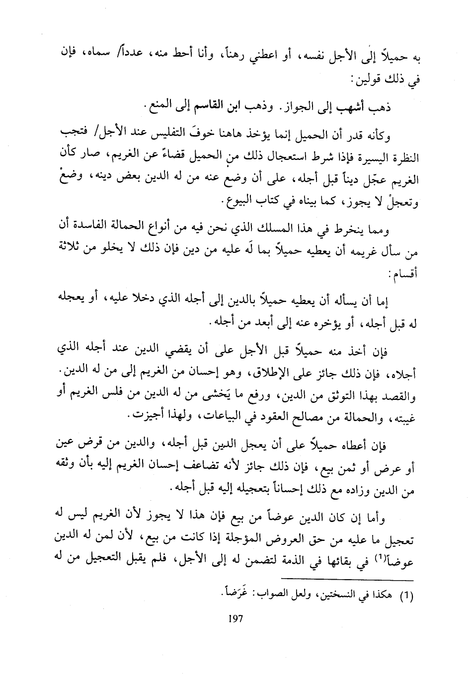 به حميلًا إلى الأجل نفسه، أو اعطني رهنًا، وأنا أحط منه، عددًا سماه، فإن