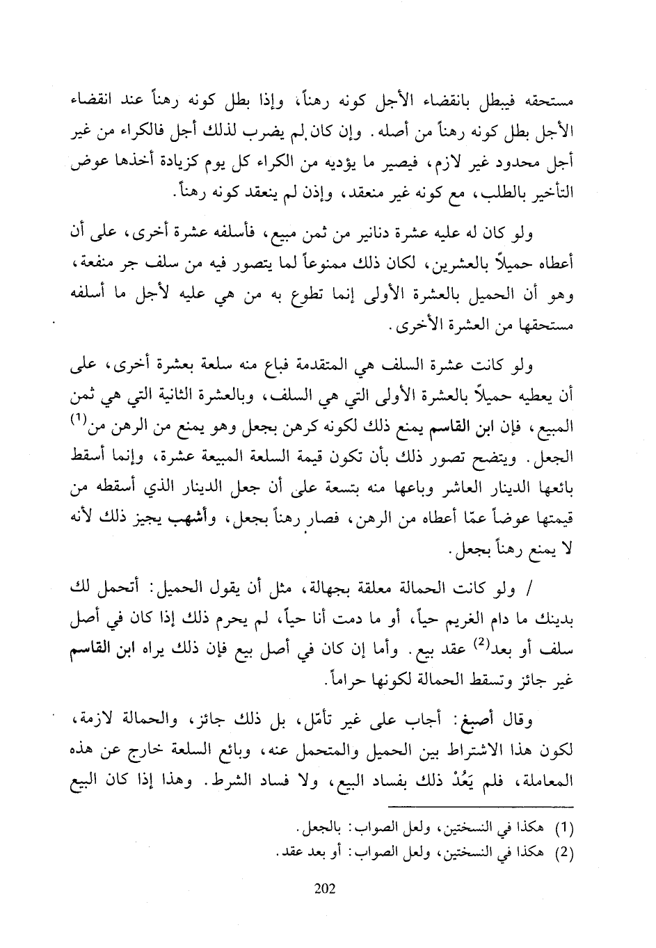 ولو كانت عشرة السلف هي المتقدمة فباع منه سلعة بعشرة أخرى، على أن يعطيه حميلًا بالعشرة الأولى التي هي السلف، وبالعشرة الثانية التي هي ثمن المبيع، فإن ابن القاسم يمنع ذلك لكونه كرهن بجعل وهو يمنع من الرهن من (¬1) الجعل. ويتضح تصور ذلك بأن تكون قيمة السلعة المبيعة عشرة، وإنما أسقط بائعها الدينار العاشر وباعها منه بتسعة على أن جعل الدينار الذي أسقطه من قيمتها عوضًا عقا أعطاه من الرهن، فصار رهنًا بجعكء وأشهب يجيز ذلك لأنه لا يمنع رهنًا بجعل.
