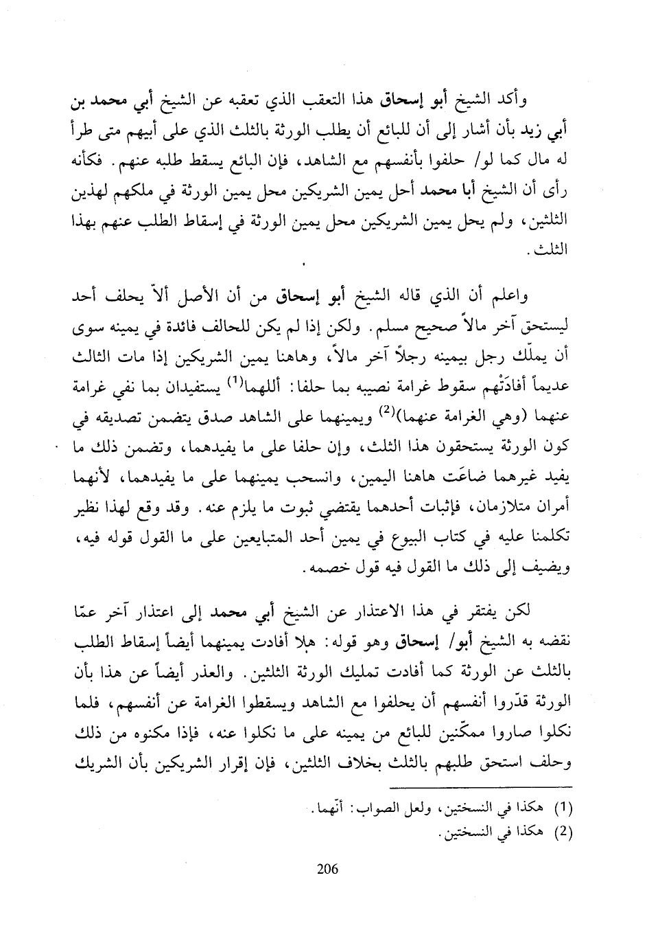 وأكد الشيخ أبو إسحاق هذا التعقب الذي تعقبه عن الشيخ أبي محمَّد بن أبي زيد بأن أشار إلى أن للبائع أن يطلب الورثة بالثلث الذي على أبيهم متى طرأ له مال كما لو حلفوا بأنفسهم مع الشاهد، فإن البائع يسقط طلبه عنهم. فكأنه رأى أن الشيخ أبا محمَّد أحل يمين الشريكين محل يمين الورثة في ملكهم لهذين الثلثين، ولم يحل يمين الشريكين محل يمين الورثة في إسقاط الطلب عنهم بهذا الثلث.