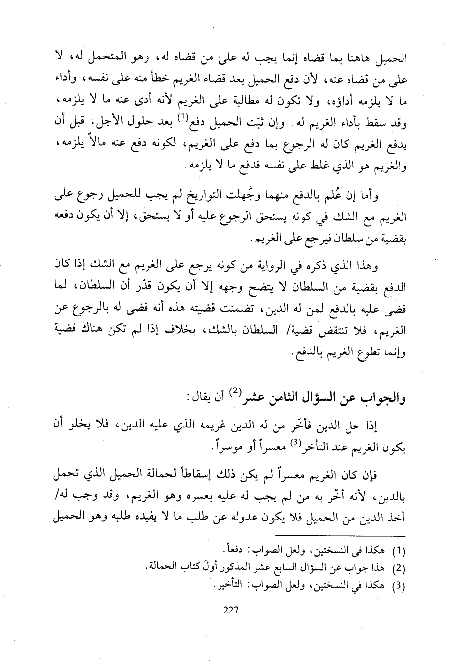 (¬2) هذا جواب عن السؤال السابع عثر المذكور أولَ كتاب الحمالة.
