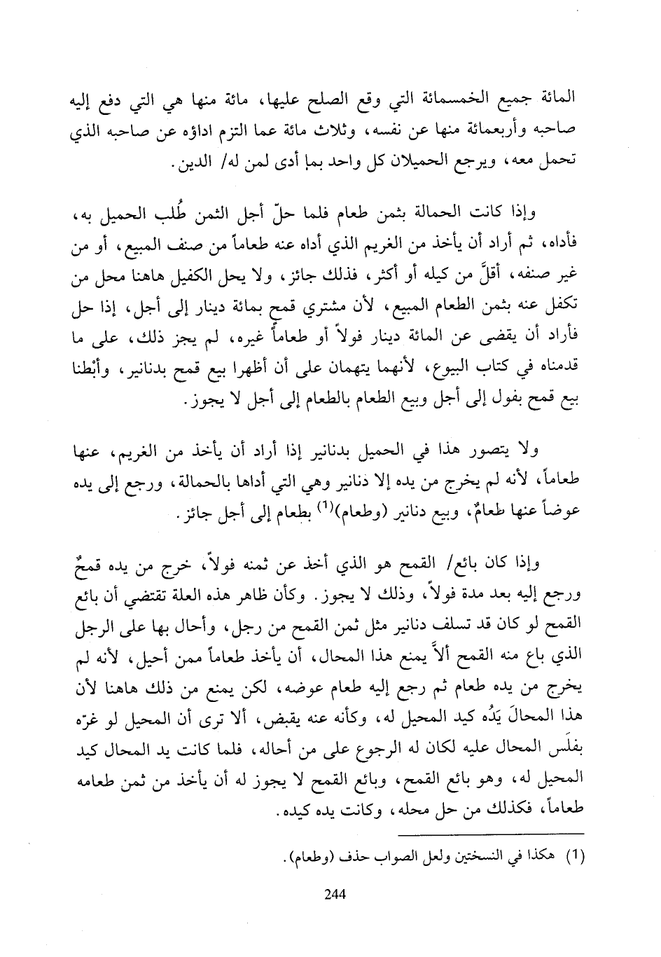 (¬1) هكذا في النسختين ولعل الصواب حذف (وطعام).