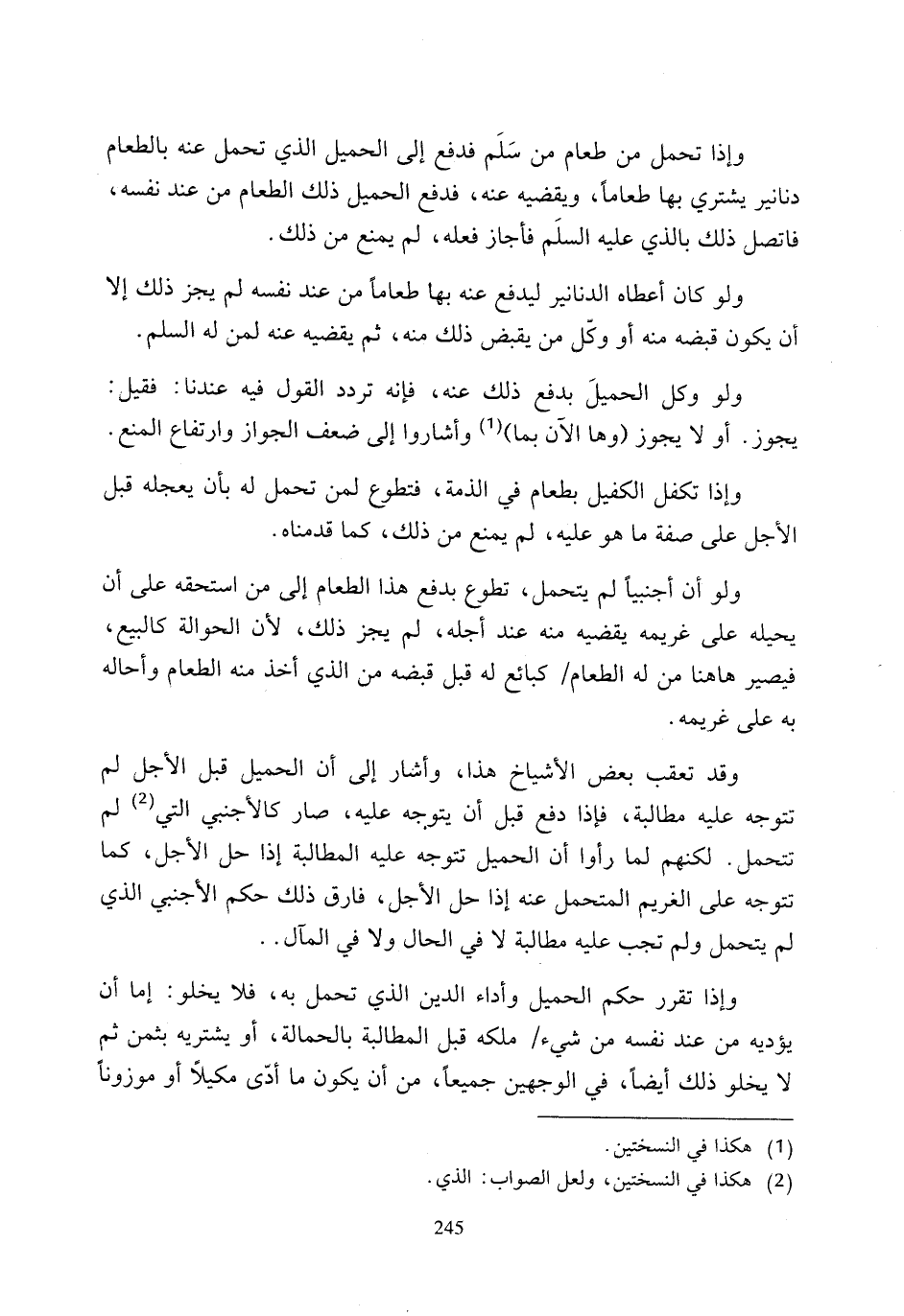 وقد تعقب بعض الأشياخ هذا، وأشار إلى أن الحميل قبل الأجل لم تتوجه عليه مطالبة، فإذا دفع قبل أن يتوجه عليه، صار كالأجنبي التي (¬2) لم تتحمل. لكنهم لما رأوا أن الحميل تتوجه عليه المطالبة إذا حل الأجل، كما تتوجه على الغريم المتحمل عنه إذا حل الأجل، فارق ذلك حكم الأجنبي الذي لم يتحمل ولم تجب عليه مطالبة لا في الحال ولا في المآل ..