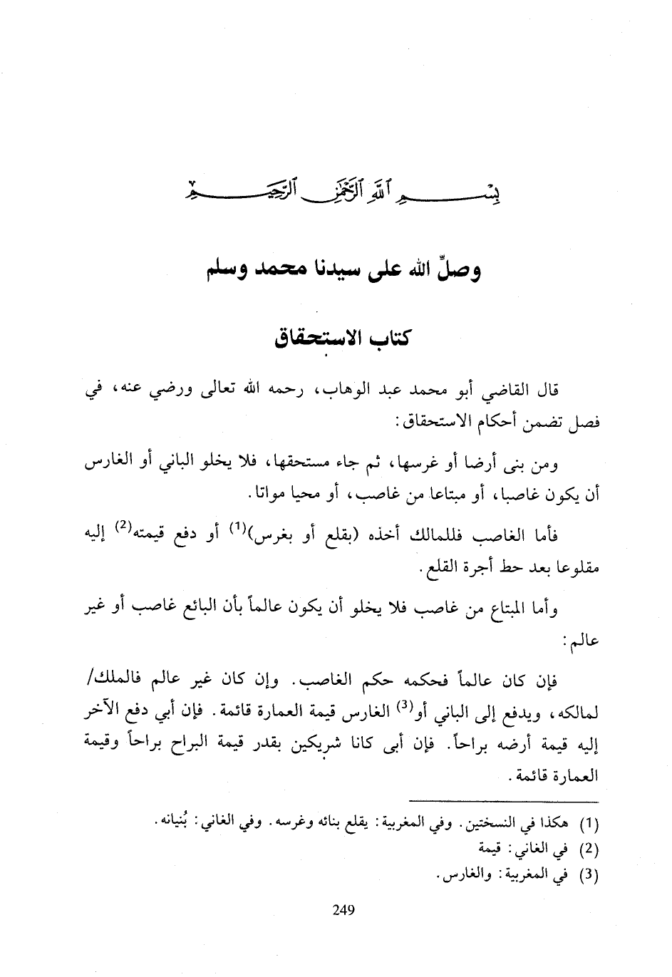 قال القاضي أبو محمَّد عبد الوهاب، رحمه الله تعالى ورضي عنه، في