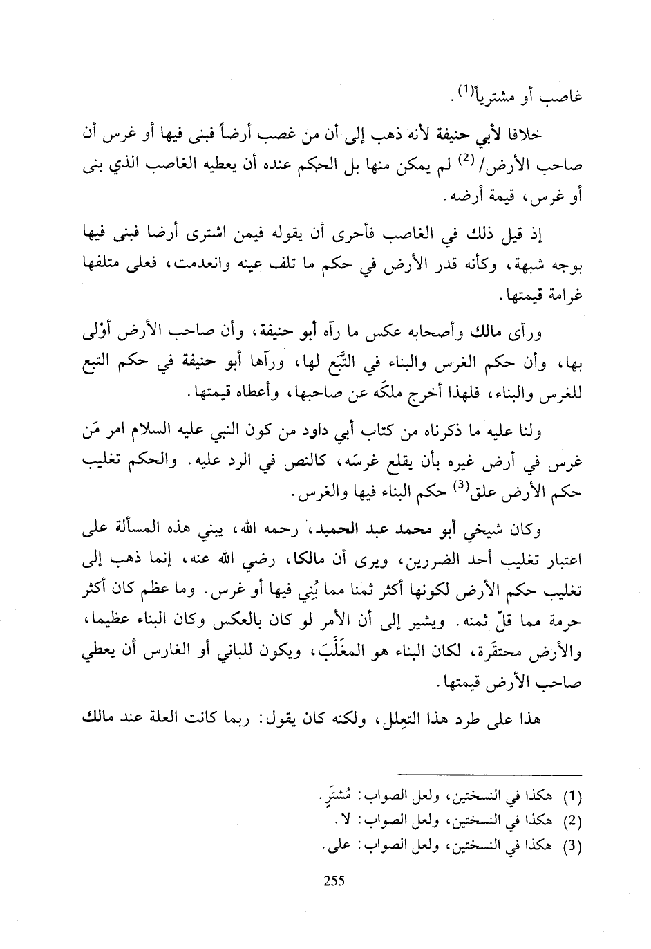 ورأى مالك وأصحابه عكس ما رآه أبو حنيفة، وأن صاحب الأرض أوْلى بها، وأن حكم الغرس والبناء في التَّبَع لها، وورآها أبو حنيفة في حكم التبع للغرس والبناء، فلهذا أخرج ملكَه عن صاحبها، وأعطاه قيمتها.