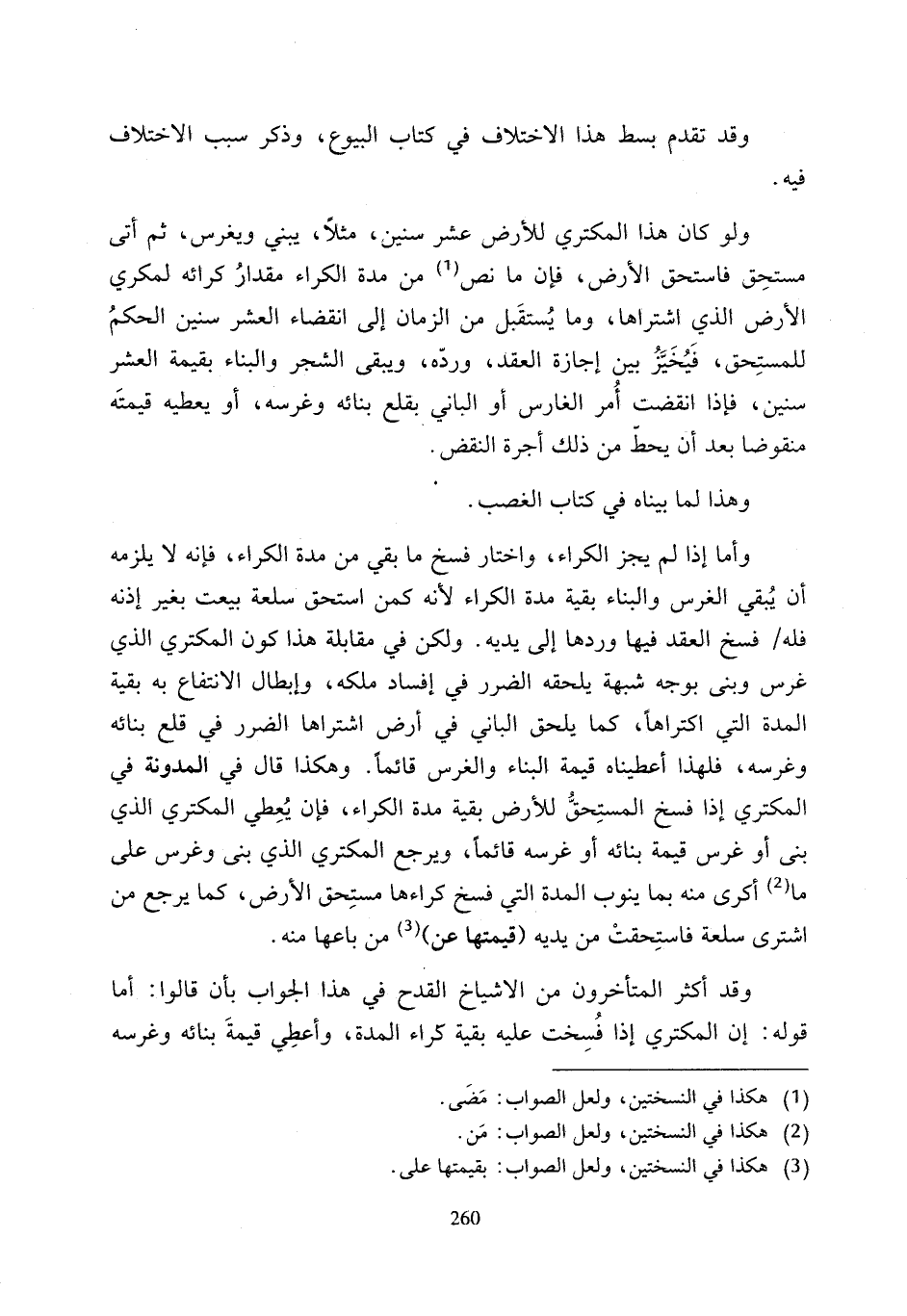 وقد أكثر المتأخرون من الاشياخ القدح في هنا الجواب بأن قالوا: أما قوله: إن المكتري إذا فُسِخت عليه بقية كراء المدة، وأعطِي قيمةَ بنائه وغرسه