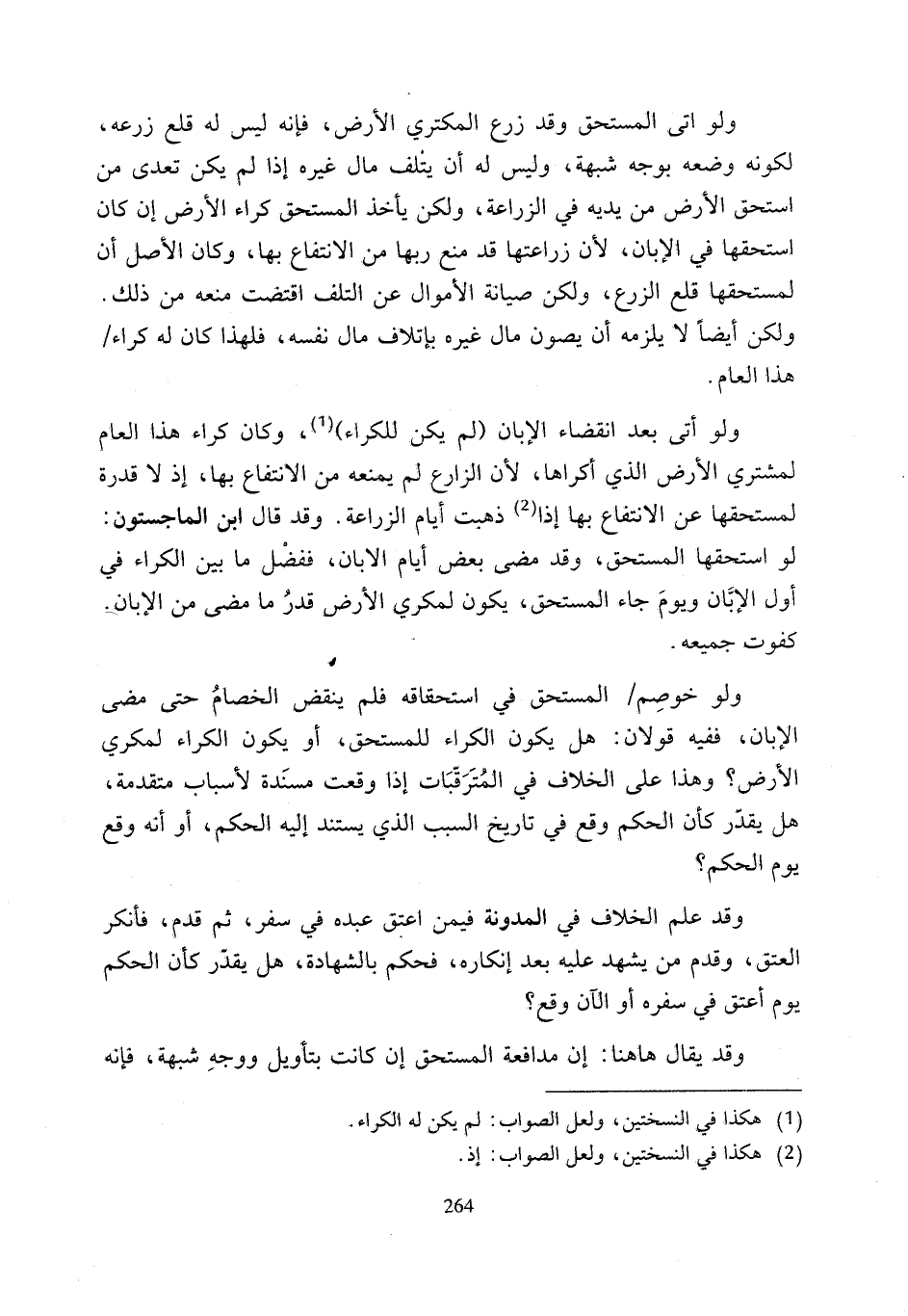 (¬1) هكذا في النسختين، ولعل الصواب: لم يكن له الكراء.