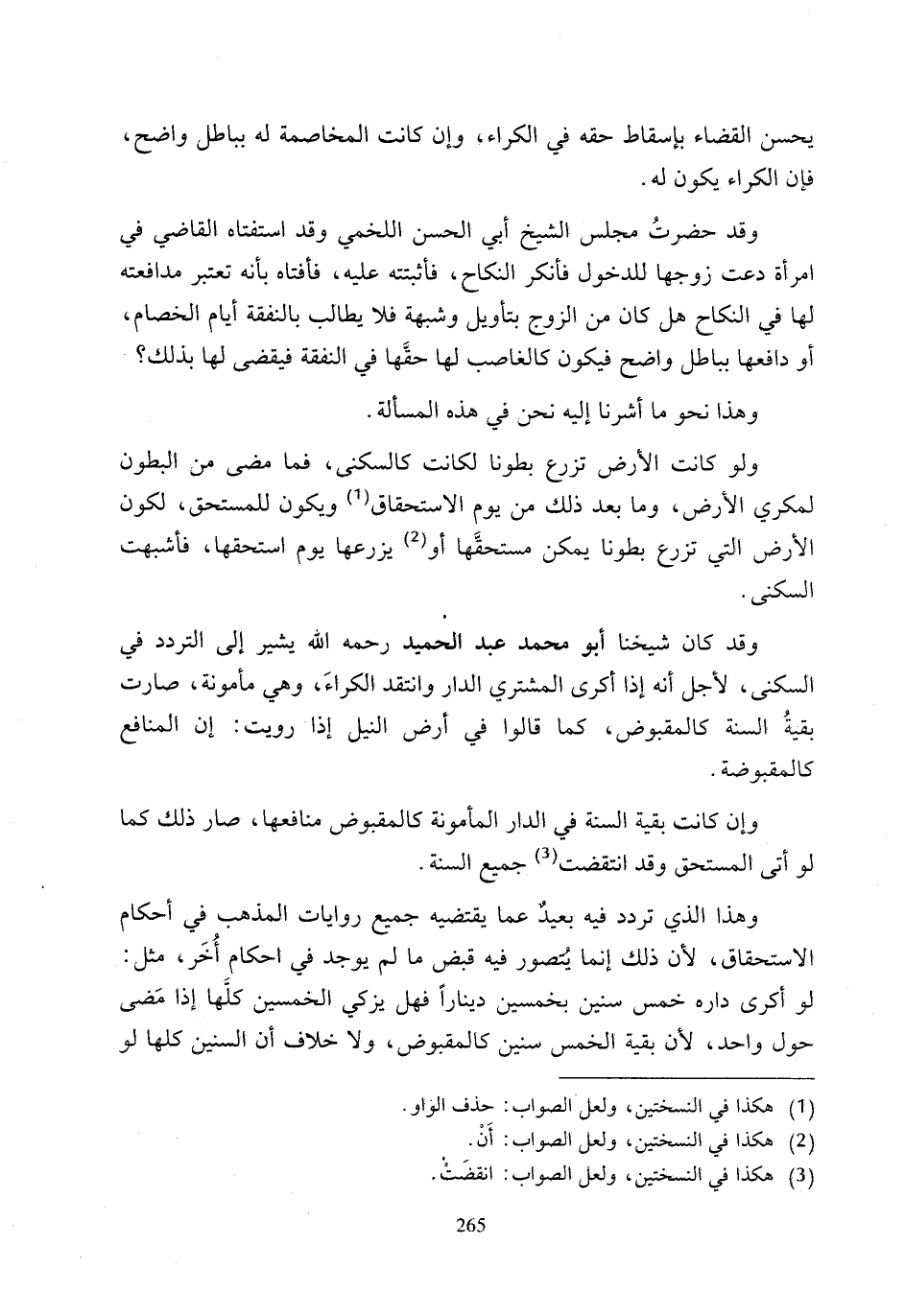 وقد كان شيخنا أبو محمَّد عبد الحميد رحمه الله يشير إلى التردد في السكنى، لأجل أنه إذا أكرى المشتري الدار وانتقد الكراءَ، وهي مأمونة، صارت بقيةُ السنة كالمقبوض، كما قالوا في أرض النيل إذا رويت: إن المنافع كالمقبوضة.