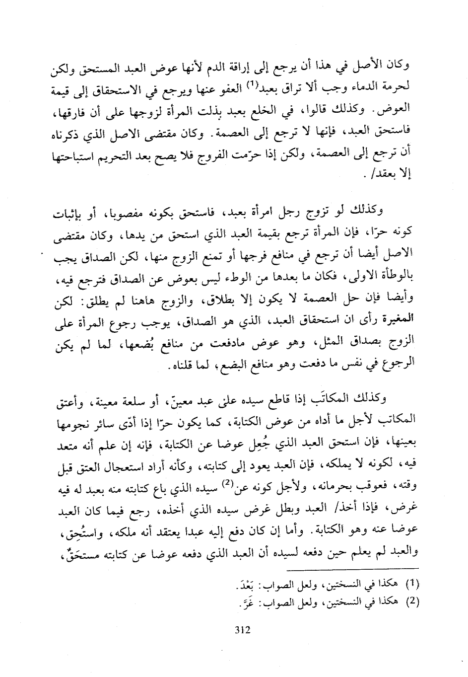 وكان الأصل في هذا أن يرجع إلى إراقة الدم لأنها عوض العبد المستحق ولكم لحرمة الدماء وجب ألا تراق بعبد (¬1) العفو عنها ويرجع في الاستحقاق إلى قيمة العوض. وكذلك قالوا، في الخلع بعبد بذلت المرأة لزوجها على أن فارقها، فاستحق العبد، فإنها لا ترجع إلى العصمة. وكان مقتضى الأصل الذي ذكرناه أن ترجع إلى العصمة، ولكن إذا حرّمت الفروج فلا يصح بعد التحريم استباحتها إلا بعقد.